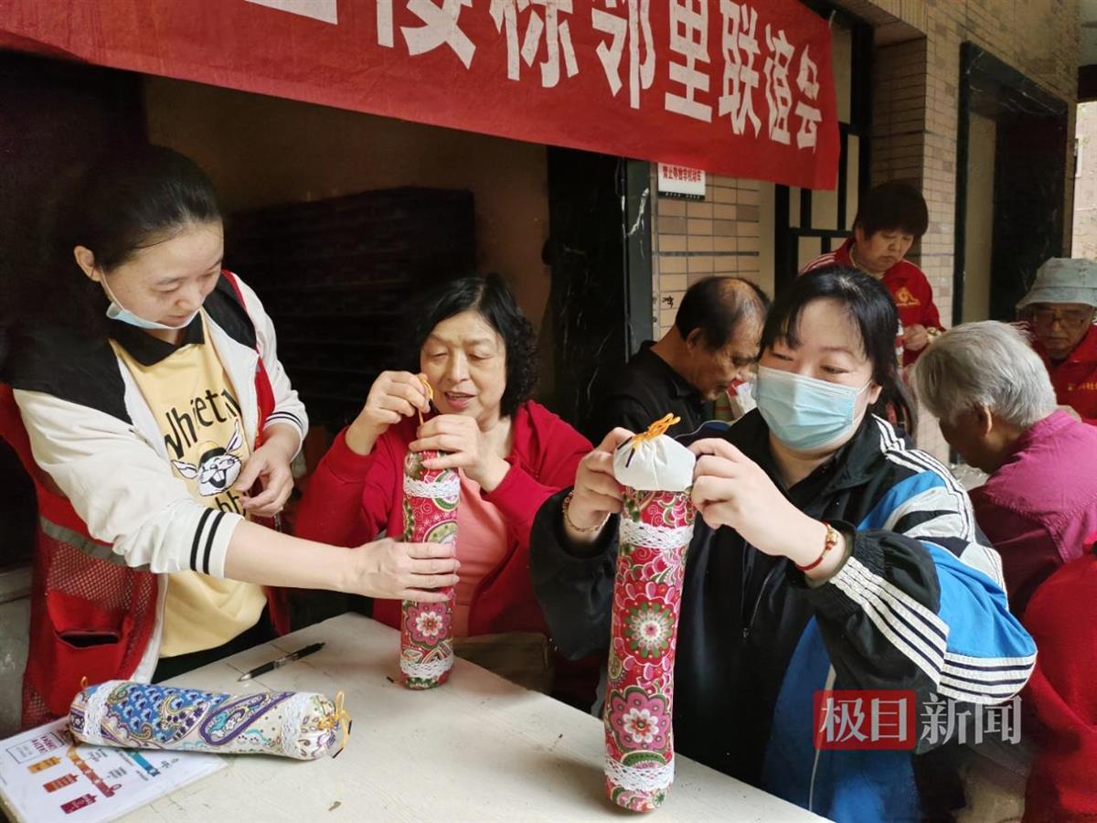 党员志愿者戚学师忙前忙后,帮忙搬运桌椅板凳、为居民做艾草枕头,他说:“联谊会让我们楼栋的居民凝聚在一起,大家将各方资源汇聚、优势互补,共同建设更加美好的东兴。”