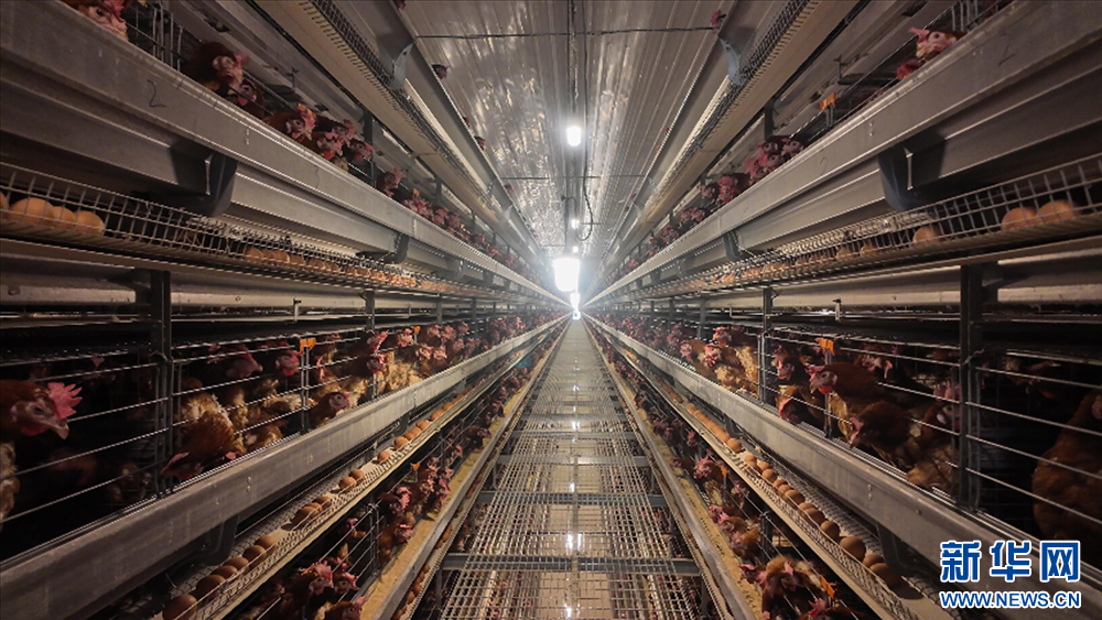 宏农公司鸡舍保持恒温恒湿,实现自动化投喂、拣蛋、除粪。新华网刘生辉摄