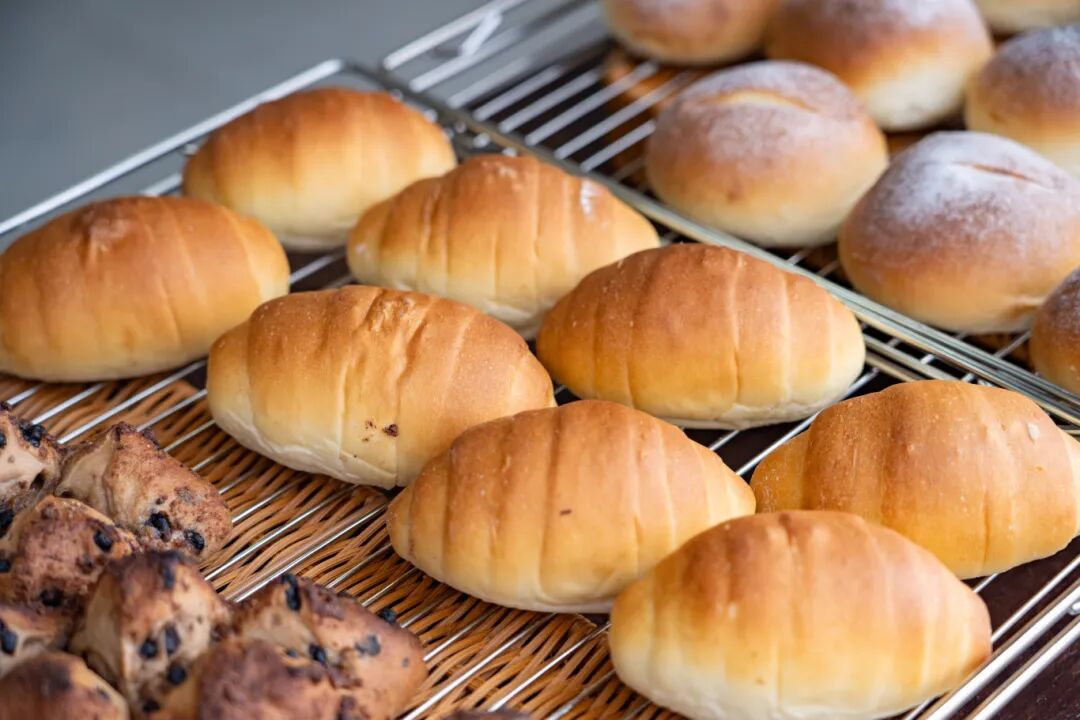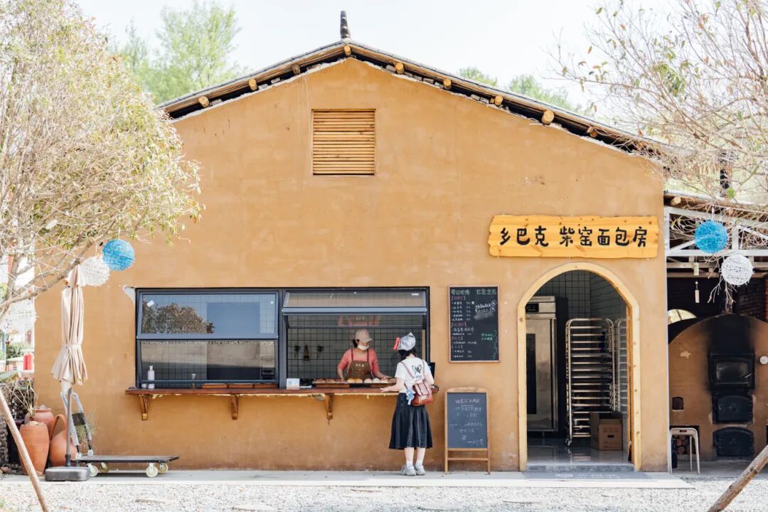 300℃的土窑,柴火噼啪作响。戴着粗布手套的师傅用长柄木铲送进面团,时间一到,米面包、红豆包、咖啡包等现烤面包裹着焦香出炉,让人垂涎欲滴。