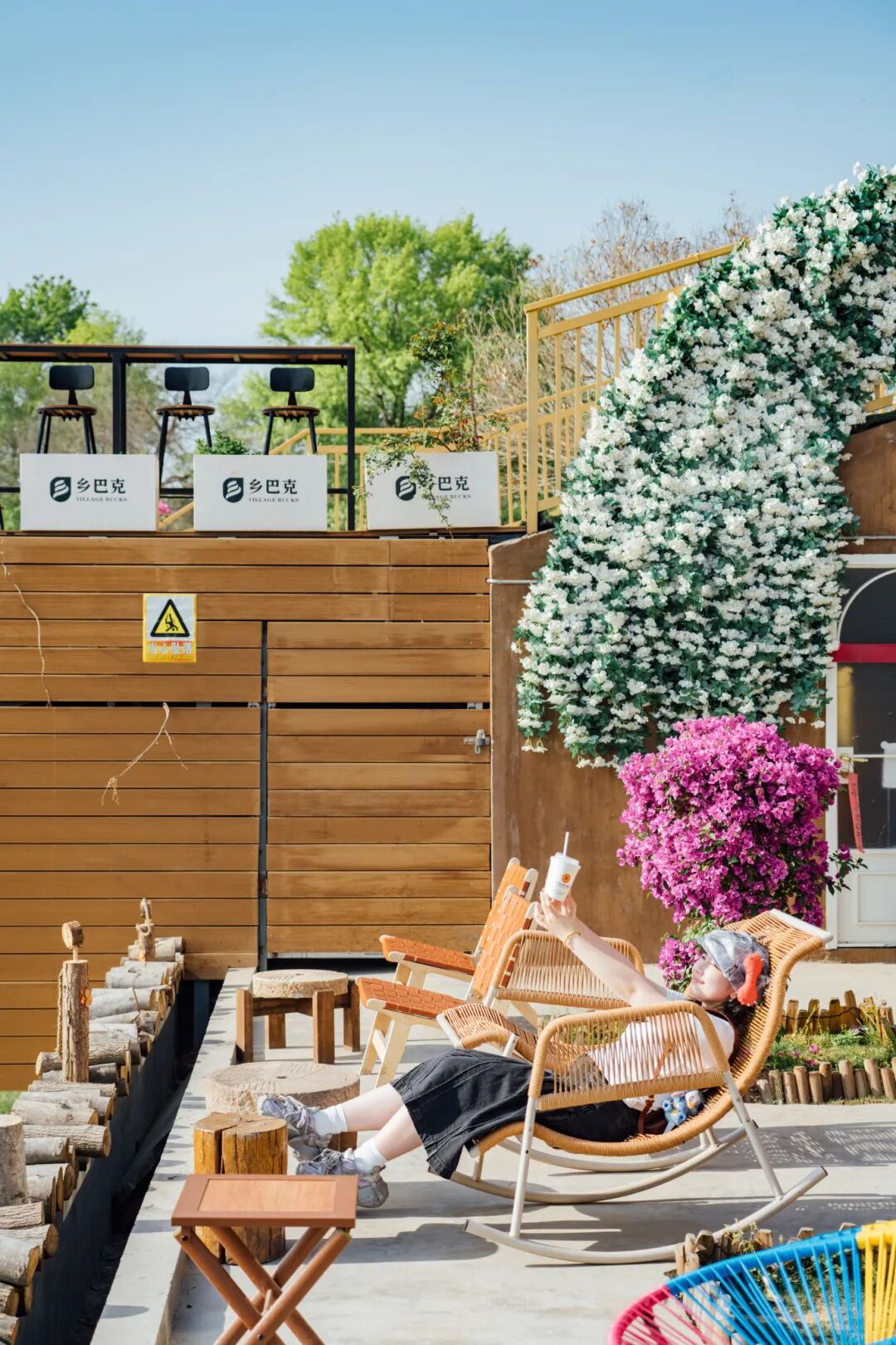 ▲靠在躺椅上喝杯咖啡,赏赏花景,班味全消