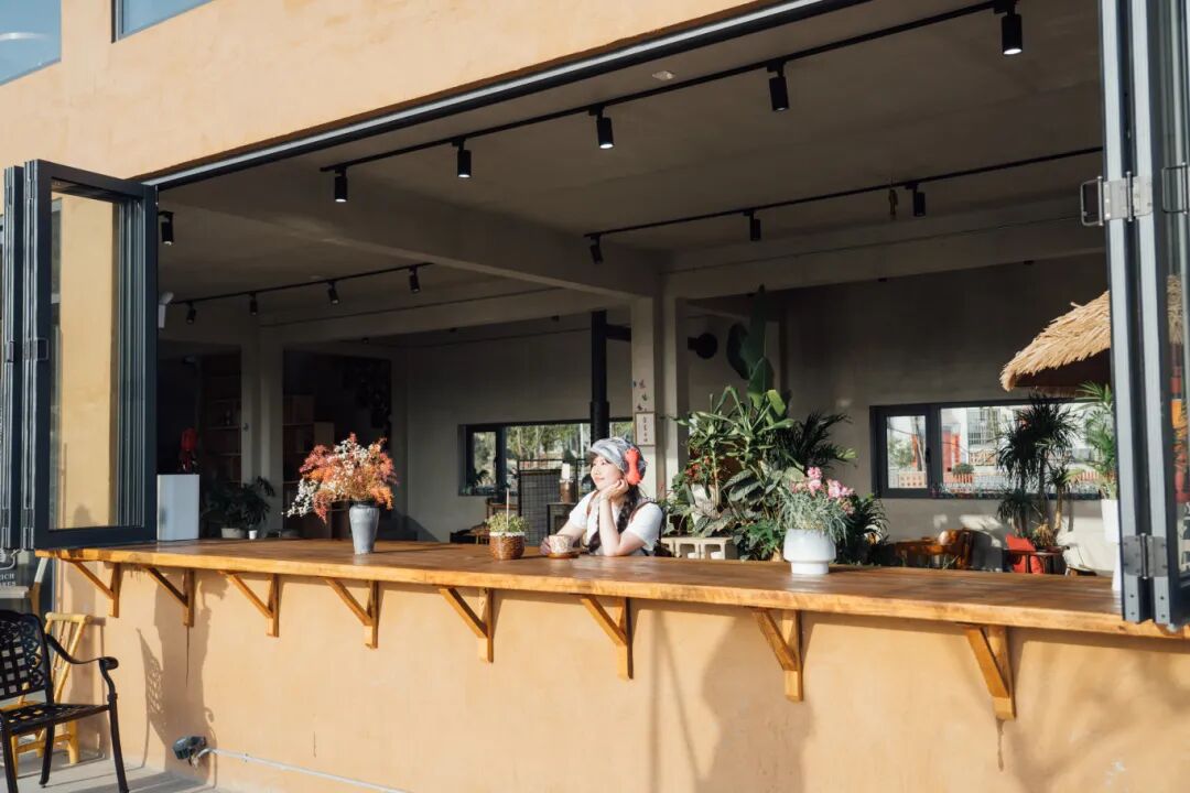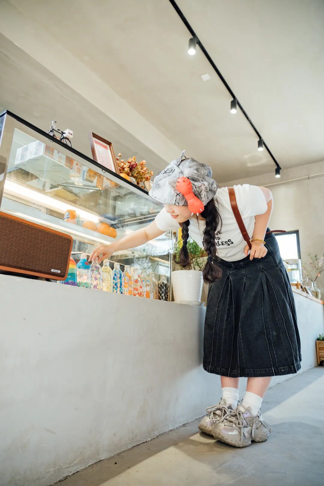 靠窗的吧台也十分吃香,时不时有年轻的女孩端起咖啡,轮番坐上吧台椅拍照,背景是屋外的稻田与花海,非常“出片”。