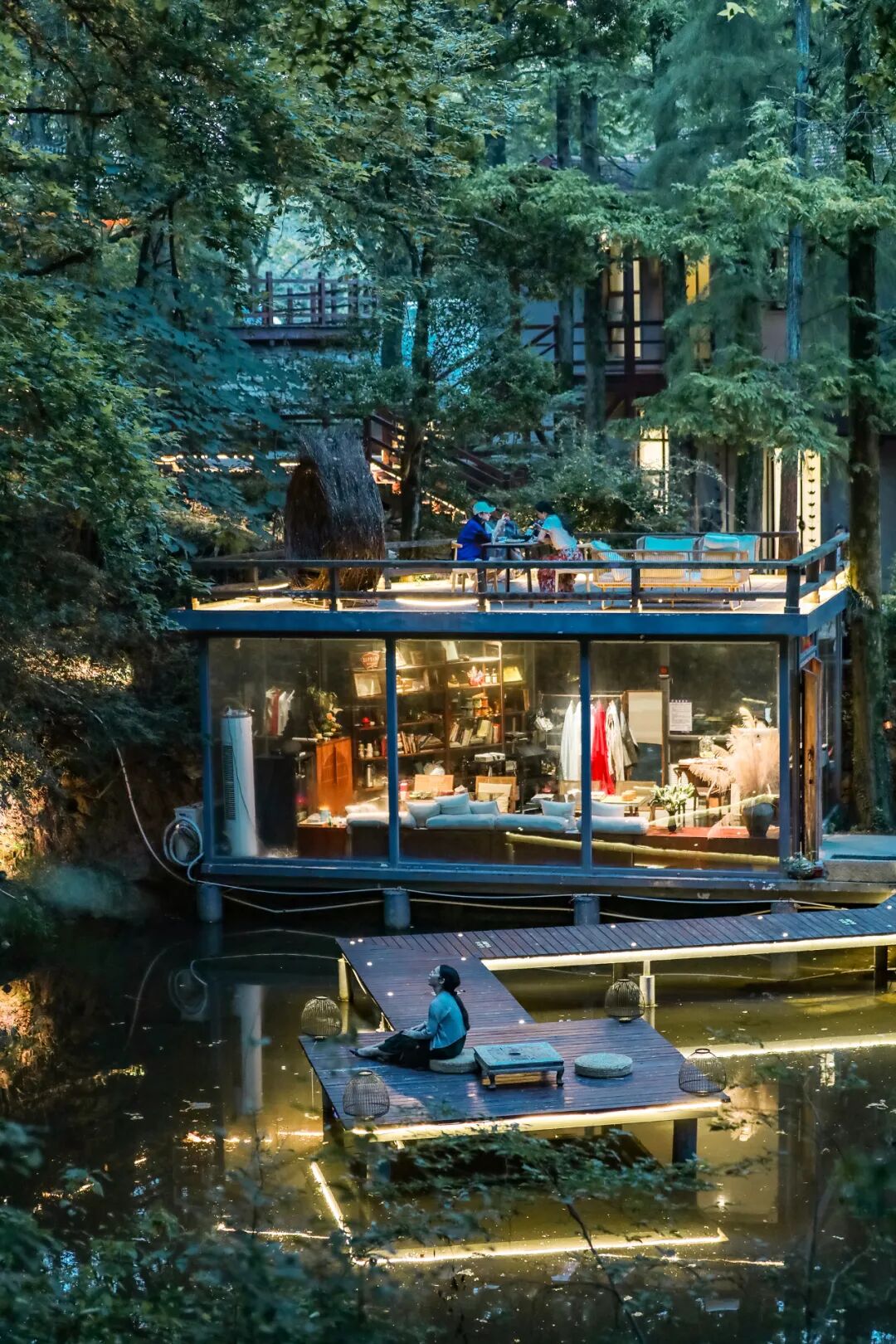 隐匿在山中的度假区,有森林木屋、私汤别墅,多种房型可选,能垂钓骑马,游湖赏花。