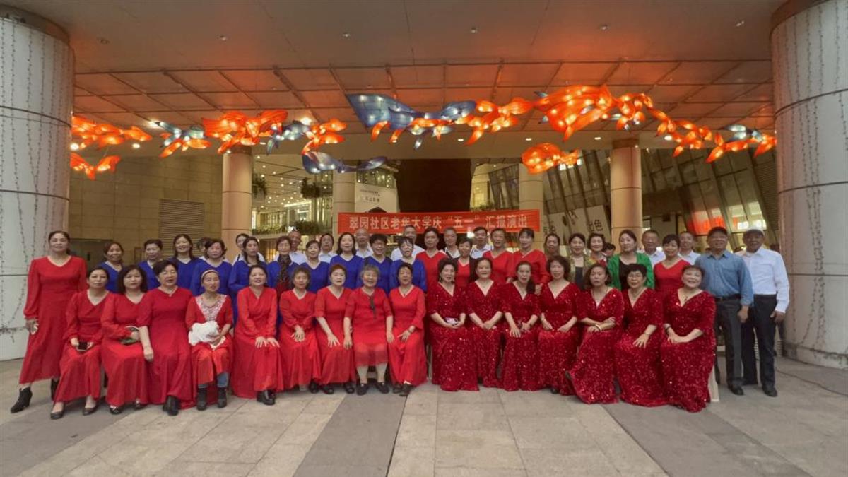翠园社区“欢歌笑语迎五一,文艺之声展芳华”文艺汇演在武商城市奥莱广场精彩上演。50余名社区老年学校学员和文体志愿者们联袂登台:退休职工铿锵开嗓重现京剧《沙家浜》经典片段、社区口琴队与民乐队合奏新编歌曲《映山红》、现场居民群众齐声合唱《共筑中国梦》《洪湖水》等18场各具特色的节目,为劳动者献上节日祝福,让劳动创造幸福的理念深入人心。