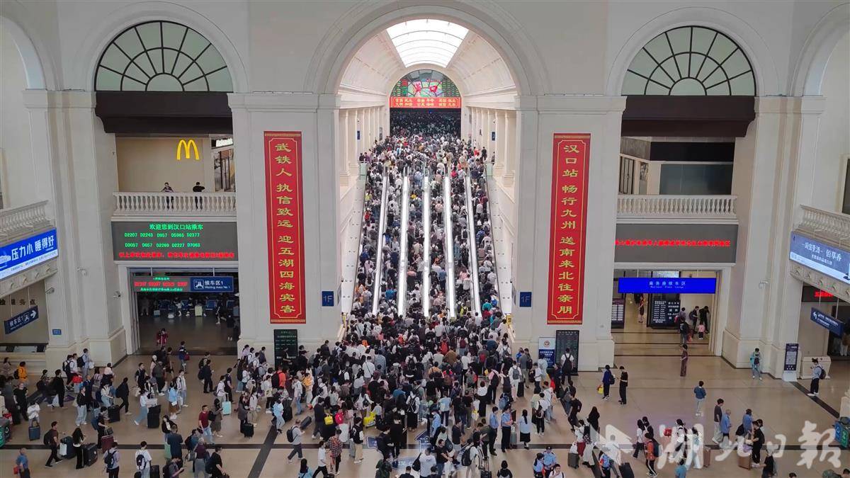 从中国铁路武汉局集团公司(以下简称“武铁”)获悉,4月30日,铁路迎来出行客流高峰,当天预计发送旅客95万人次,超过日常的两倍,其中武汉、汉口、武昌三大站共将发送旅客44.8万人次。