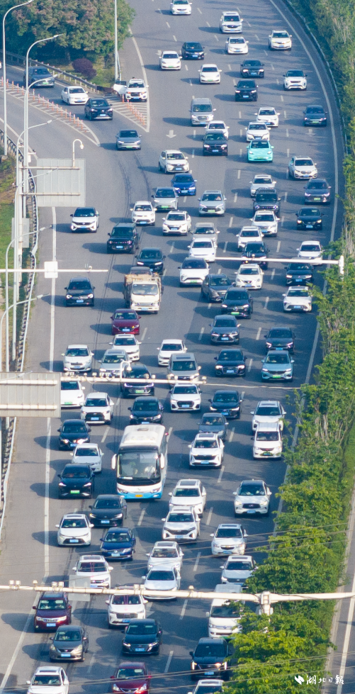 2025年5月1日,五一假期首日 ,在武汉市龚家岭收费站,大批车辆正排队进出城。(湖北日报全媒记者 何宇欣 摄)极目新闻记者了解到,5月1日上午,武汉各大火车站客流迅速攀升。据预测,今天汉口站、武汉站有望双双创下单日旅客发送量的历史新高。