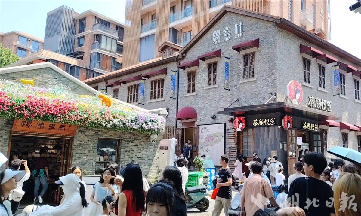 斑驳的青石板、沧桑的百年砖墙,与潮流市集交织出时空交错的独特韵味。“五一”假期首日,武昌昙华林历史文化街区迎来客流高峰。作为武汉文旅的“顶流”地标,这里以“历史+潮流”的双重魅力,成为市民与游客的热门打卡地。