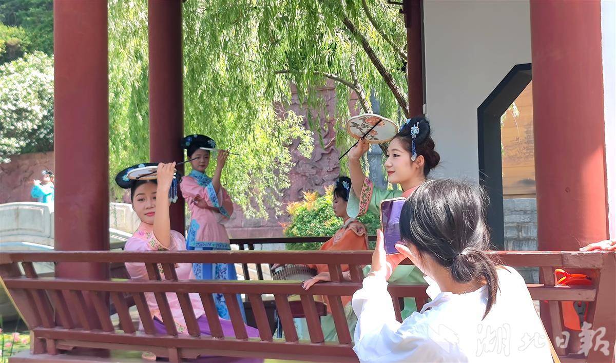 五一当日,黄鹤楼公园推出的互动演出之一《梦回太白》。今年,黄鹤楼公园以系列互动演出激活“天下江山第一楼”的千年诗意,再度“出圈”,圈粉无数。从蛇年春晚惊艳全国的《凤舞九天》,到十余场融合传统与现代的文化演艺轮番登场,这座文化地标,用创新表达让千年文脉焕发新活力,成为广大游客争相打卡的诗意目的地。
