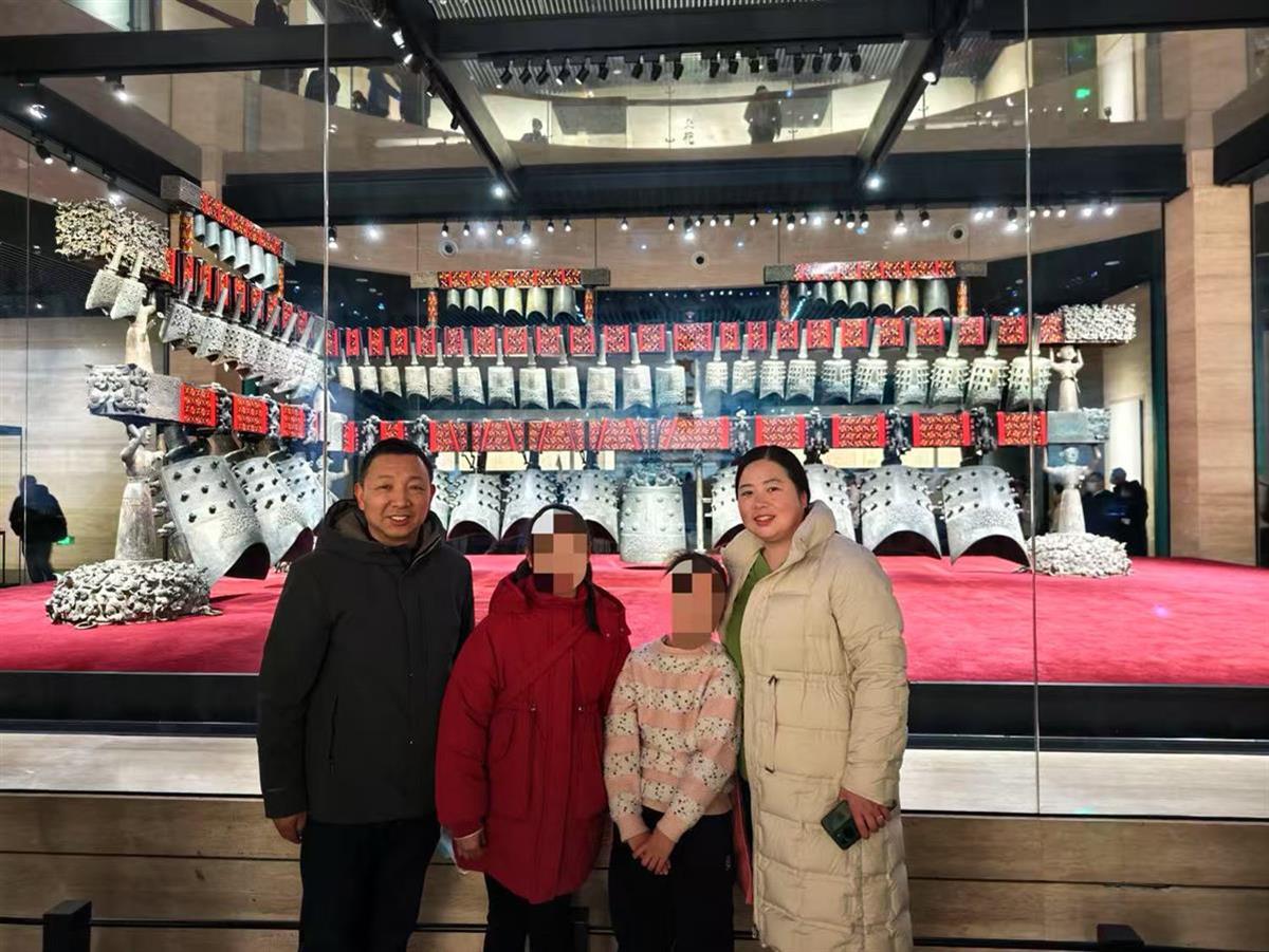 同样感受到朱万春温暖的还有小辰。父亲因病离世后,小辰变得沉默寡言,整天郁郁寡欢。春寒料峭的2月,朱万春趁着周末休息时间,特意带小辰来到湖北博物馆。博物馆里,朱万春耐心地给小辰讲解每一件文物背后的故事,带着小辰一起领略历史的魅力。一番参观玩耍过后,小辰的脸上终于露出了久违的灿烂笑颜,重新找回了生活的快乐。