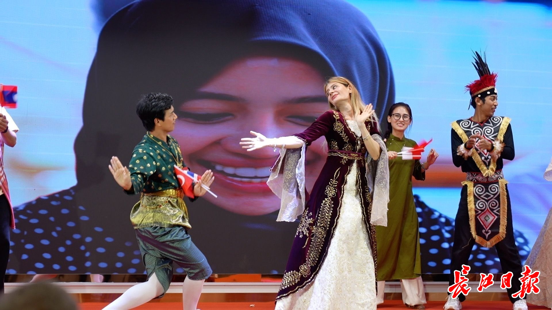 在汉留学生为《漫步中国》伴舞。李春摄