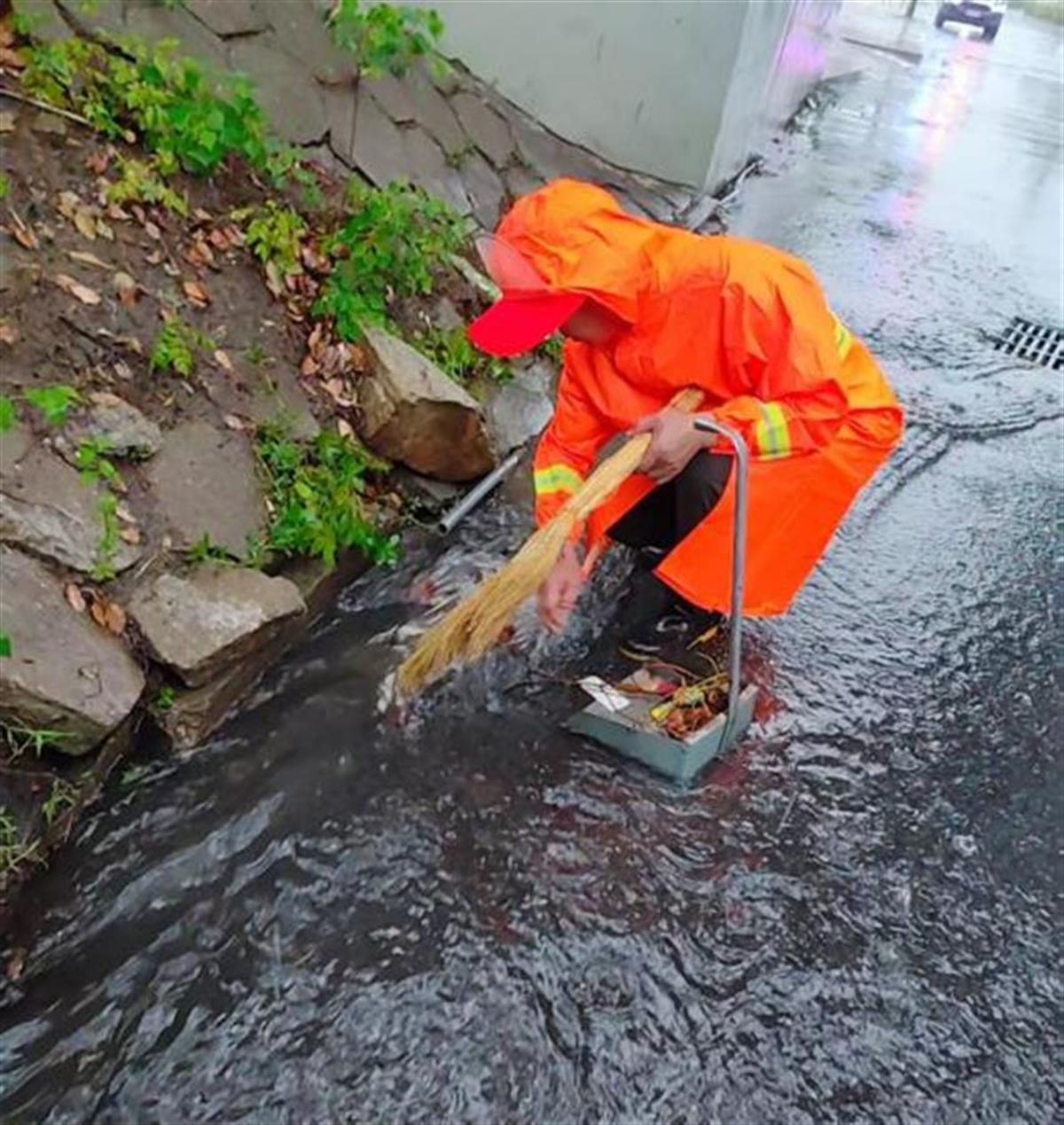 天桥涵洞下是暴雨积水高发区,较为危险。直属三中队在重点高架桥等位置,安排专人进行站岗值守,不间断上报积水及清淤情况,保障桥下畅通。