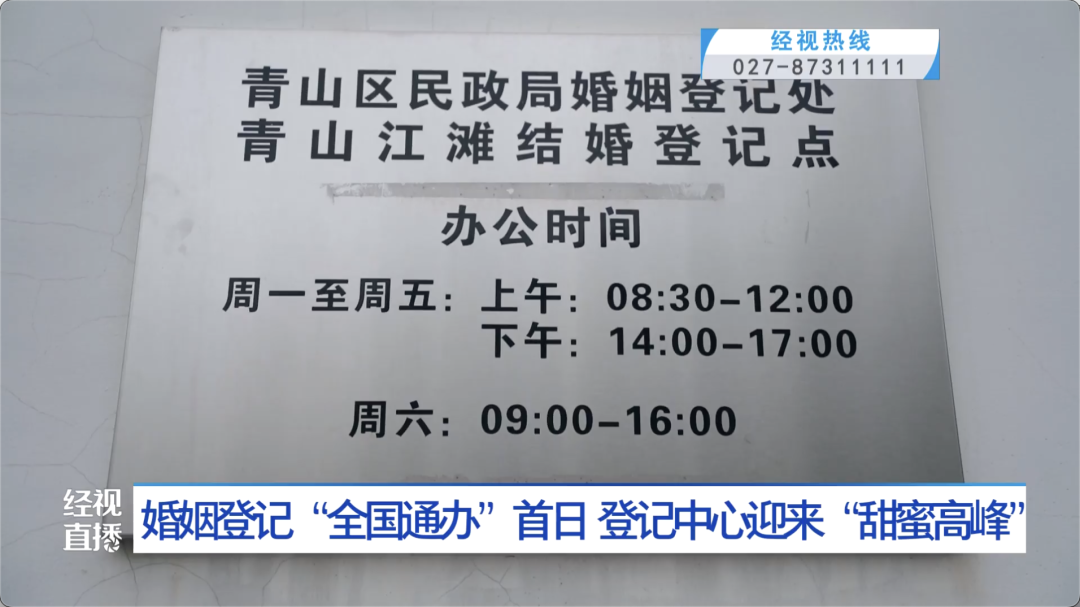 5月10日起,婚姻登记正式实施“全国通办”,即便是来汉旅客,凭身份证和符合要求的证件照,都可以在武汉就近的婚姻登记处办理婚姻登记领证,这一新规的实施获得大家的一致点赞。