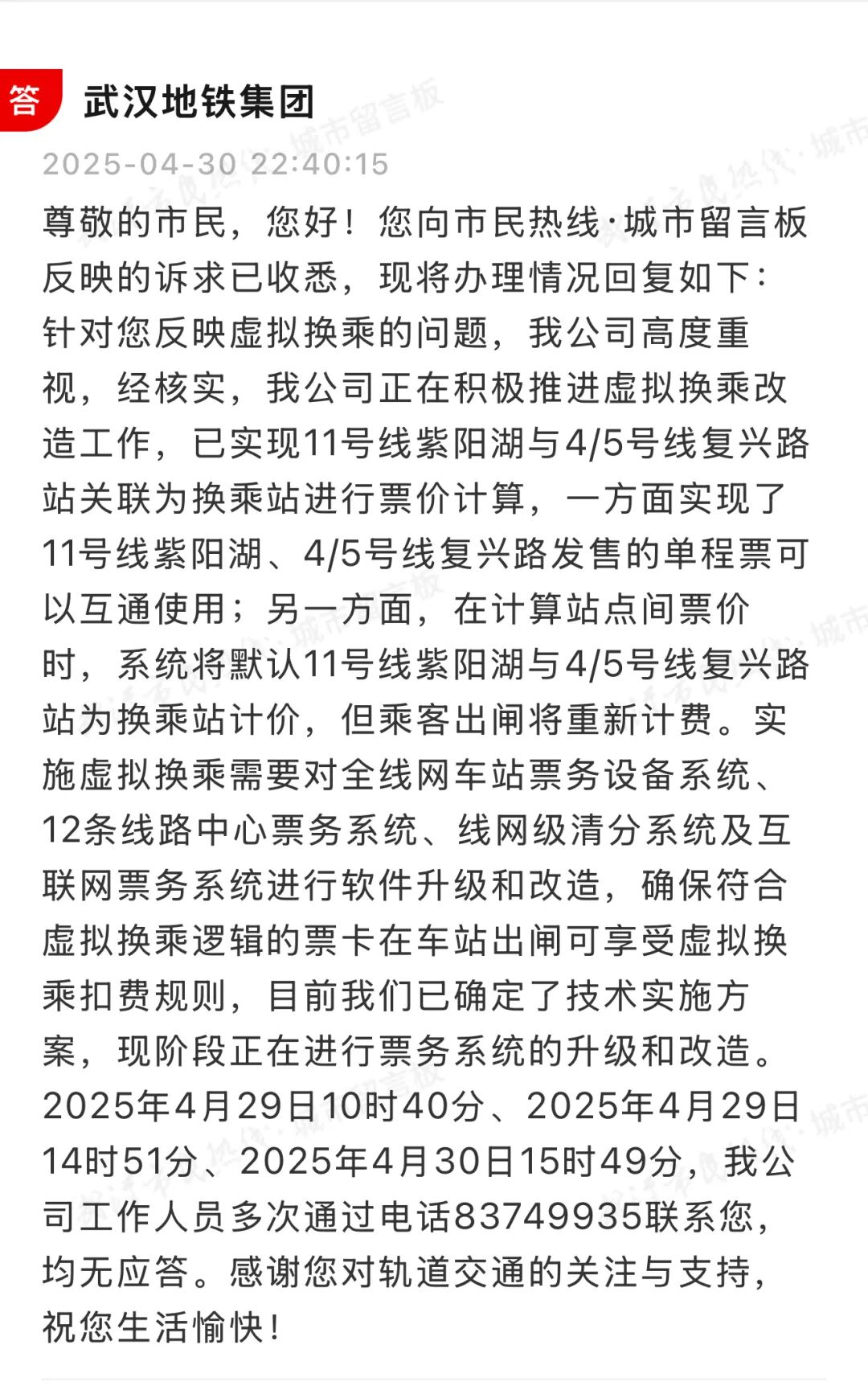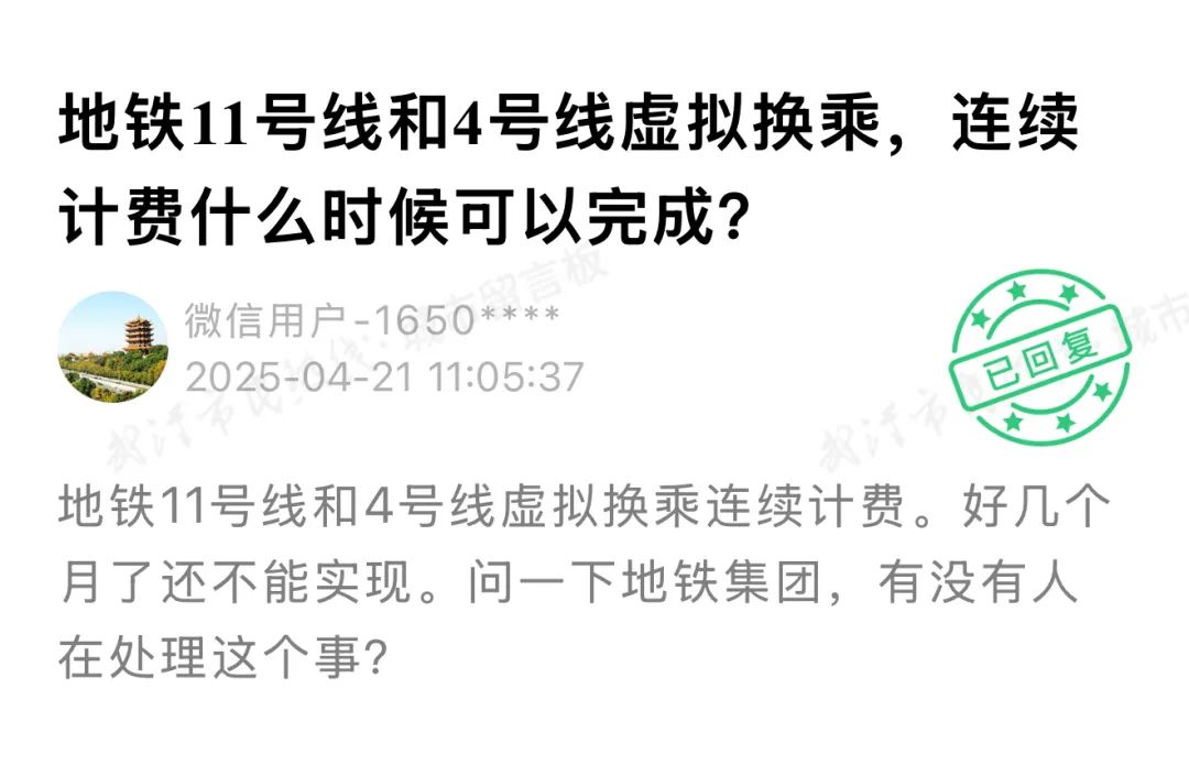 近年来,不少市民在武汉城市留言板询问“武汉地铁什么时候能实现虚拟换乘”,尤其是武汉地铁11号线二期、三期开通后,市民对复兴路站和紫阳湖站实现“虚拟换乘”的呼声更高。