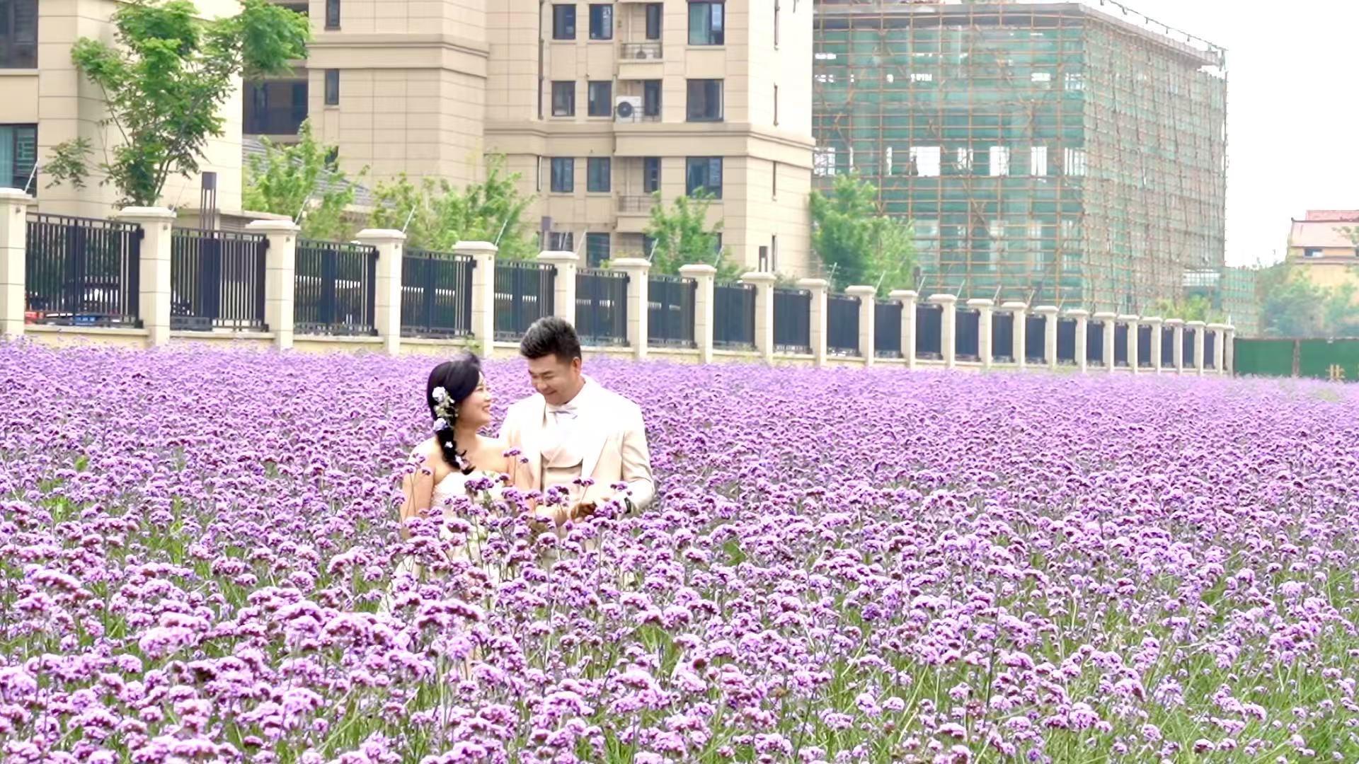 近日,新洲区邾城街古城大道城南华府小区前的空地上,6000平方米的马鞭草迎来盛花期,绵延的紫色花海如梦如幻,不仅成为市民家门口的“网红打卡地”。还成为众多新人拍摄婚纱照的浪漫背景,让“诗与远方”近在咫尺。