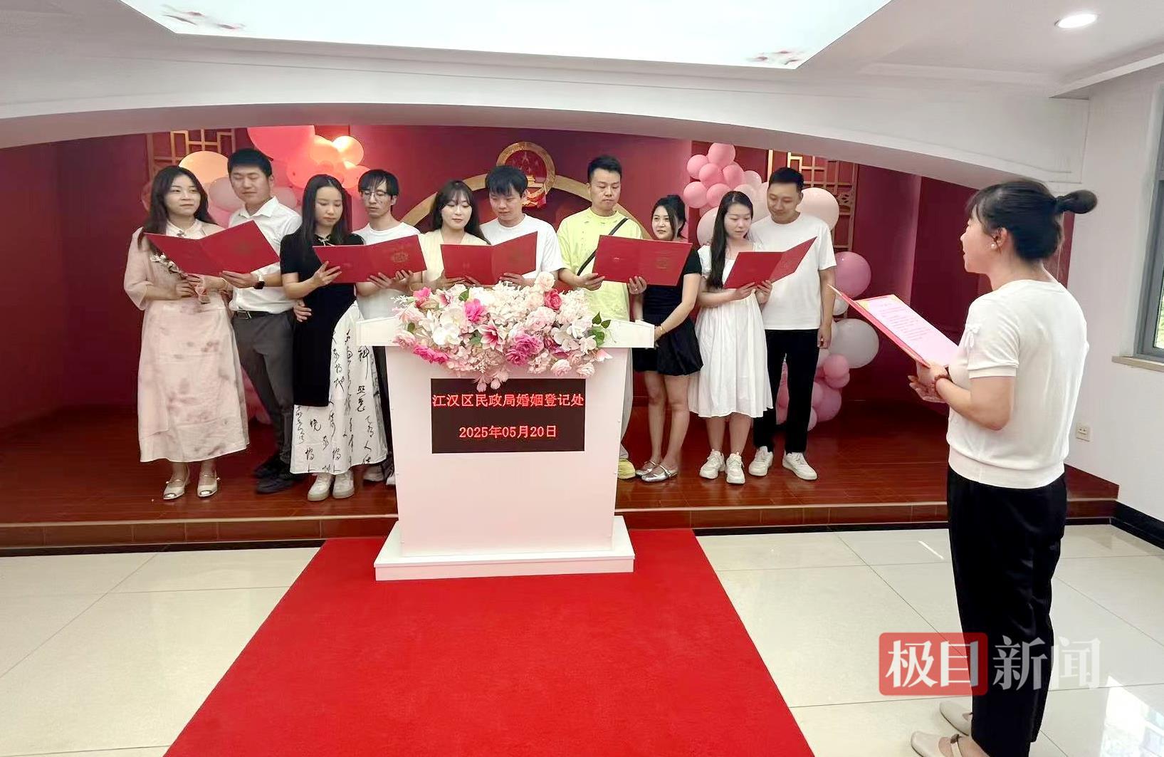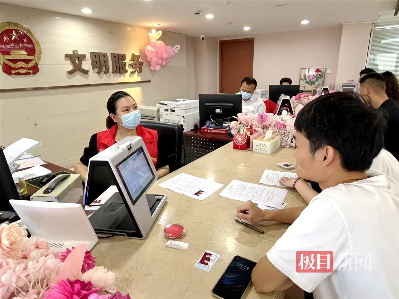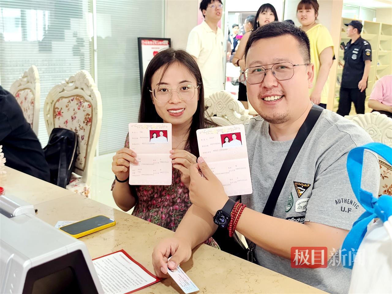 “5月20日的谐音是我爱你,我们特地选的这个日子,觉得很有意义。”段先生告诉记者,他们来武汉旅游后研究了新政策,发现连户口本都不用带,当即决定选个好日子领证。