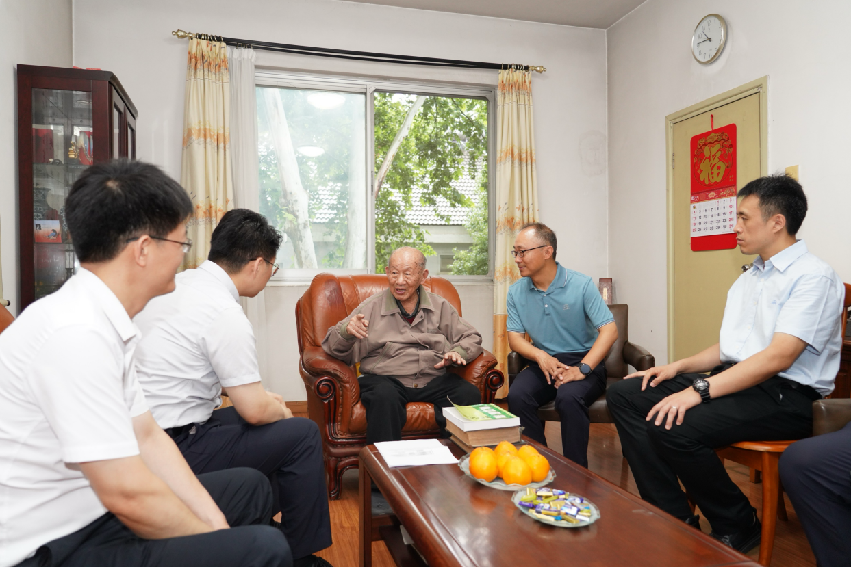 崔崑(中)与前来看望他的科学技术出版社编辑交谈。通讯员陶然 摄