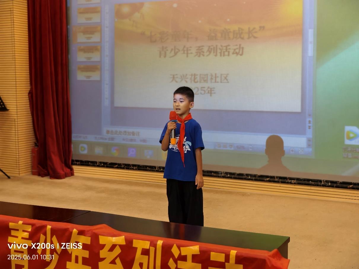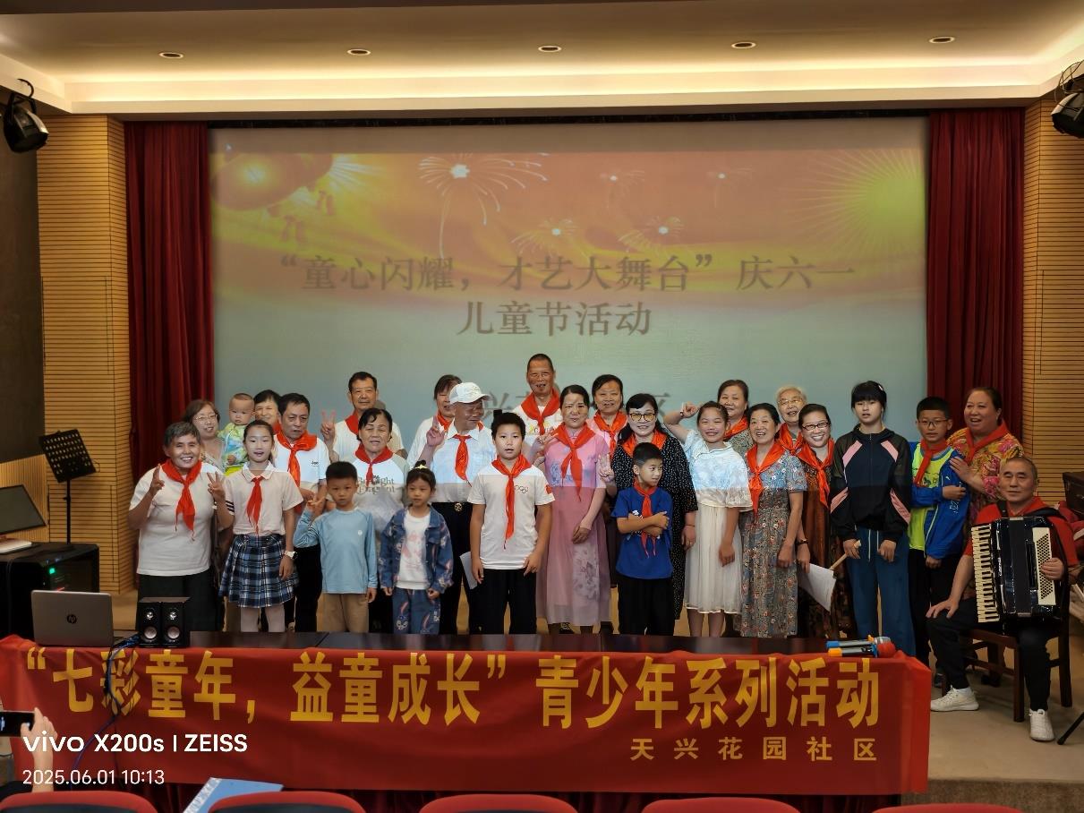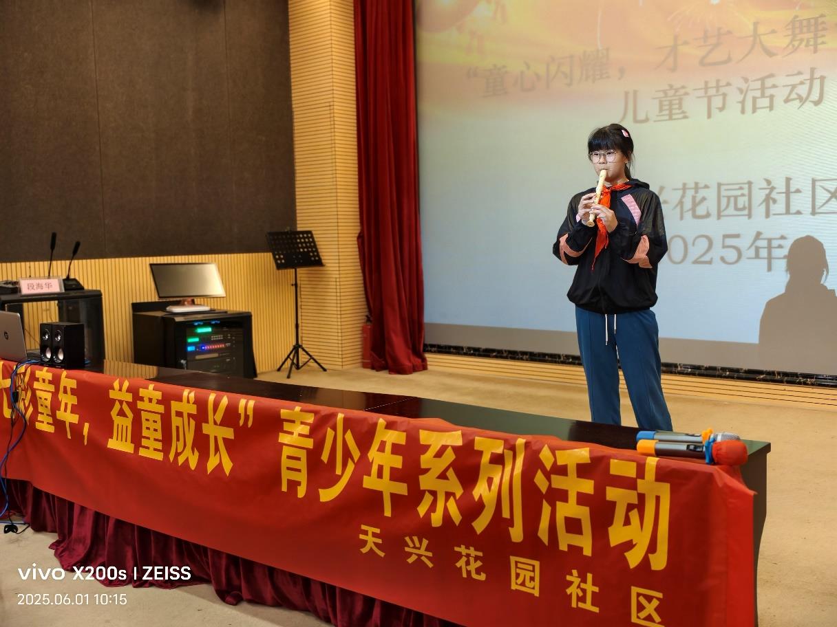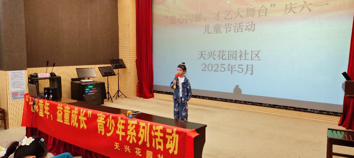 为庆祝六一国际儿童节,给社区儿童提供展示才艺的舞台,6月1日,武汉天兴花园社区精心策划并开展了“童心闪耀 才艺大舞台”主题庆祝活动。社区内众多孩子踊跃参与,用精彩的表演为节日增添了欢乐氛围。