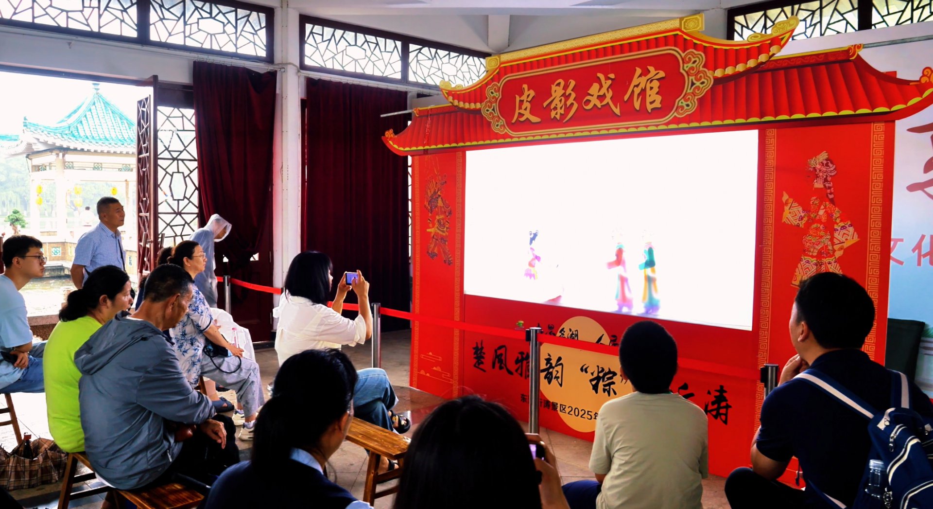 东湖听涛景区,游客观看皮影戏表演。景区供图