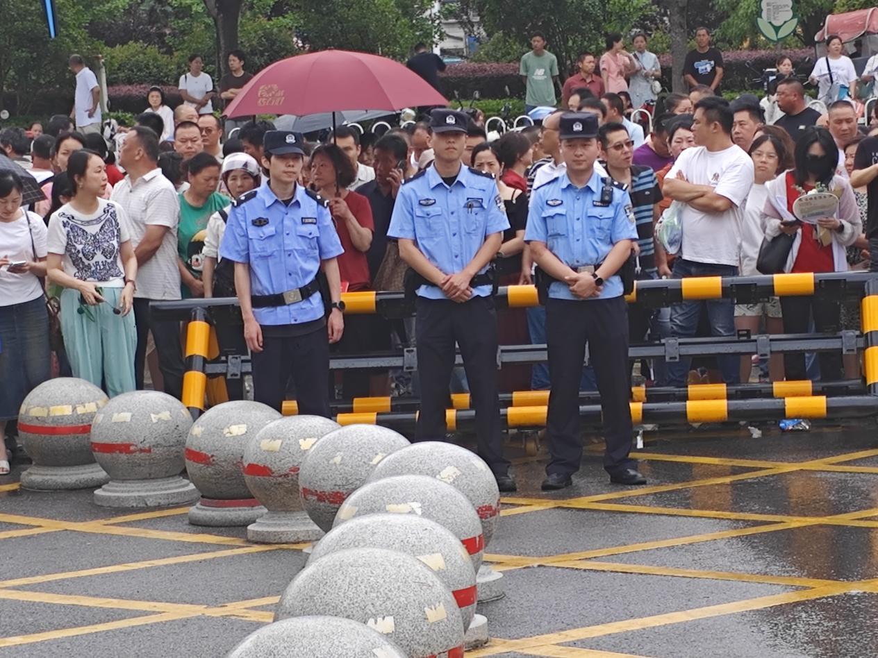 上午10时许,暴雨突袭江夏,考点周边瞬间积水成洼。然而,民辅警的安保节奏丝毫未乱:执勤民警冒雨驻守校门,疏导家长避雨等候;巡逻队员踩着积水往返于考点周边,排查隐患;机动组随时待命,为考生及候考家长提供应急服务。尽管制服被雨水浸透,他们依然坚守岗位,成为考场一道亮眼的“路标”。