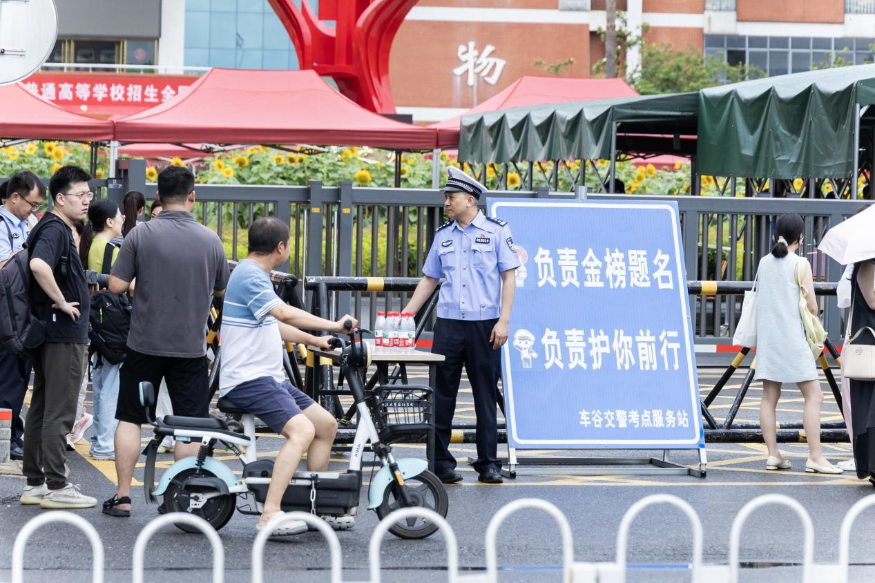 从清晨到傍晚,从晴天到暴雨,车谷交警始终坚守岗位,用“硬核”举措保障交通秩序,以温情服务传递关怀,为考生和家长筑起安全屏障,助力莘莘学子逐梦高考 。