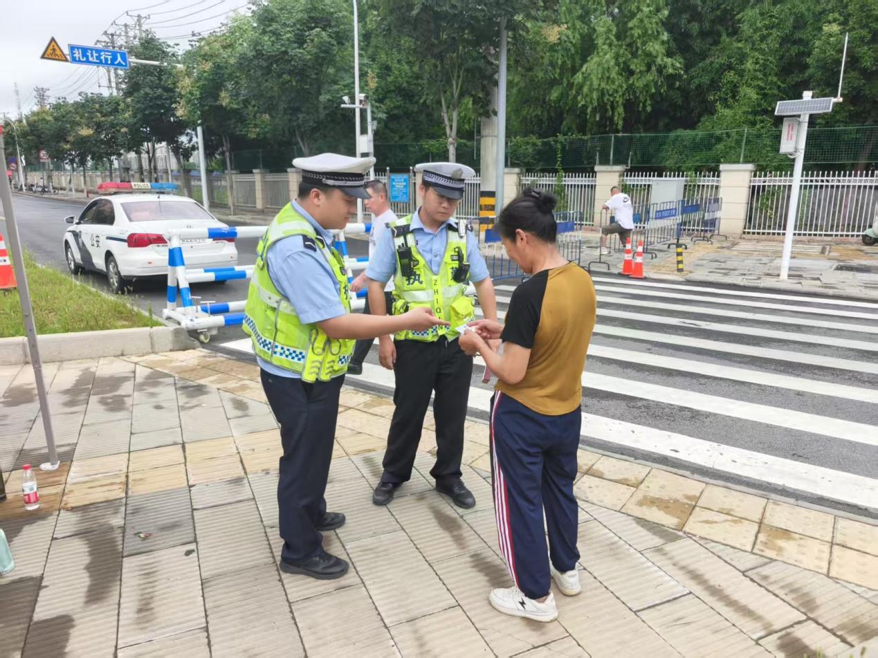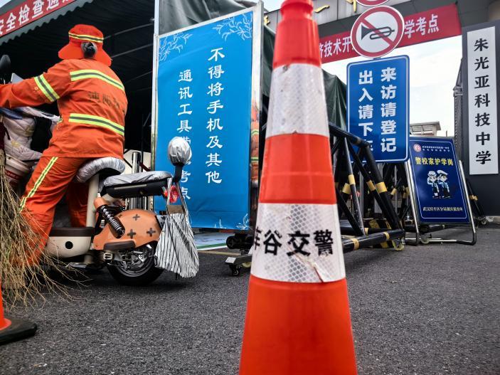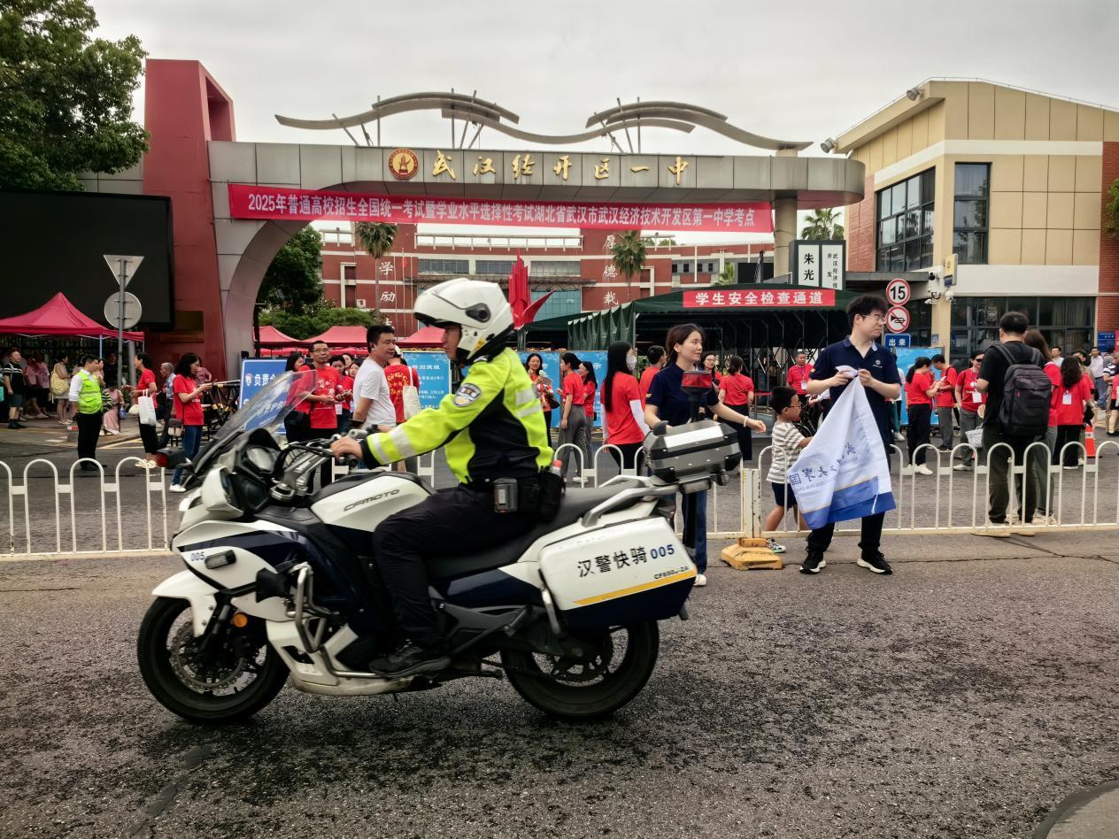 首场考试结束后的11时35分,在武汉经开一高的考点外,一名考生因无法联系到父母急得向民警姚明求助,姚明迅速电话联系家长,将考生安全送到家长手中,并贴心嘱咐后续考试要提前约定接送地点。