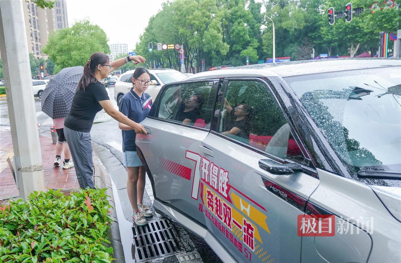江城街头巷尾,“爱心送考车”亮着暖灯穿梭不息,车轮卷起水花,载着希望稳稳前行。