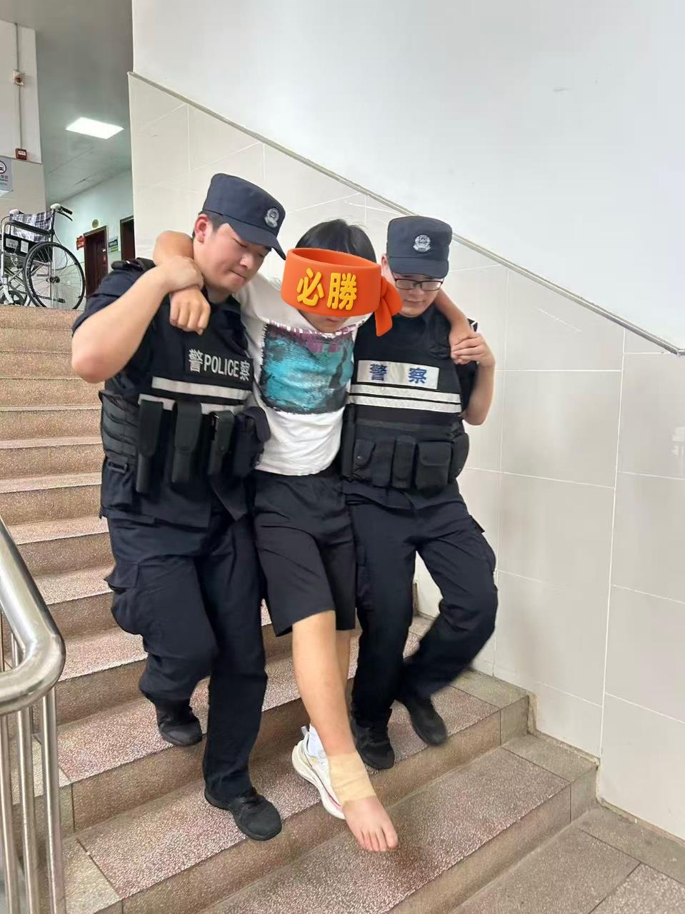 高考前夕,考生张同学因意外导致腿部骨折,行动困难。首日,在江夏区职业中学考点,江夏区公安分局郑店检查站民警发现坐轮椅的他后,主动上前护送其上到3楼考场。为保障其顺利完成考试,此后两天,执勤民警辅警接力护航:开考前准时在考点等候,将考生背至考场;考试结束后,快反队员提前守候,安全将其背下楼交还家长。连续3天,郑店公安检查站民辅警用坚实臂膀与暖心行动,为考生铺就了一条“无障碍”的高考之路。