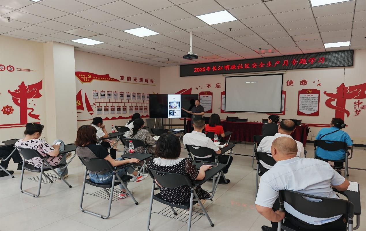 为提高社区工作人员、小区物业及保洁人员的安全意识和应急能力,6月13日下午,武汉长江明珠社区围绕“人人讲安全,个个会应急——查找身边的安全隐患”为主题,组织开展了安全生产月专题学习活动。