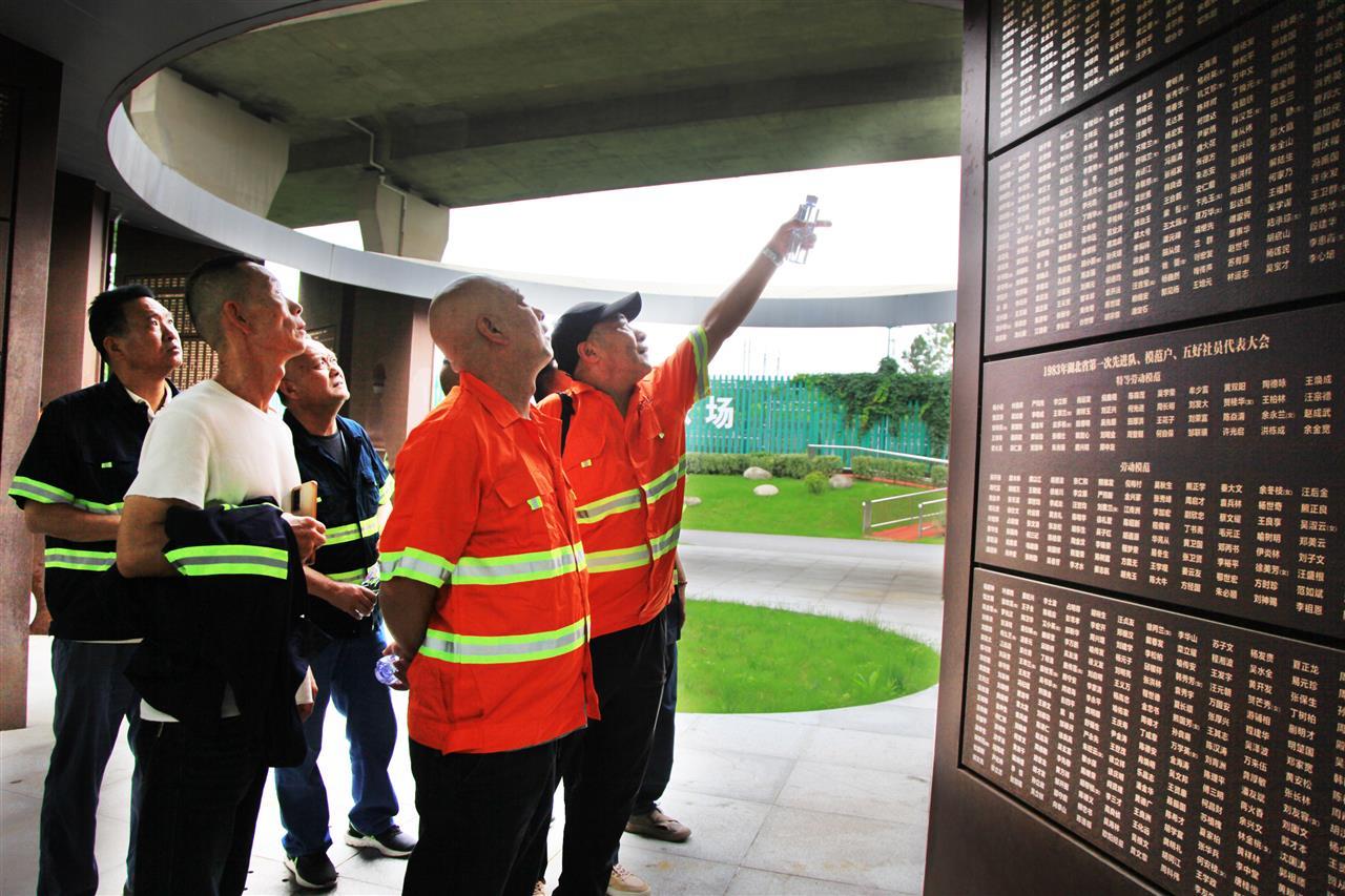“欢迎大家来到戴家湖劳模工匠文化公园。”当天下午,跟随着讲解员的脚步,“光荣在岗40年”的一线环卫工人开启了参观游览之旅。环卫工人们说,虽然平时都在公园附近做事,却没有机会仔细地游览一下,这次游园还安排了导游和游览车,感谢领导的关心,我们一定要好好地感受一下身边的巨变!
