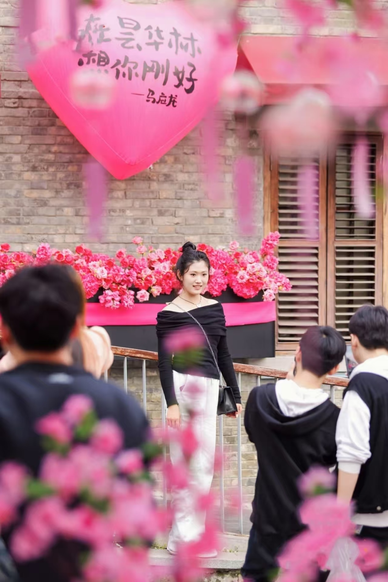 在充满文艺气息的昙华林,非遗正以“潮玩姿态”刷新游客认知。马应龙非遗体验店紧跟时尚潮流,在门口设置了打卡装置和开设直播间,吸引了众多年轻游客前来拍照。除了可以购买明星产品眼霜、痔疮膏外,游客还能体验香包制作过程,了解非遗之美和中医药文化。刚买完眼霜的“00后”女孩小雨举着手机直播,“传统药膏撞上国潮包装,我能连拍十条视频!”