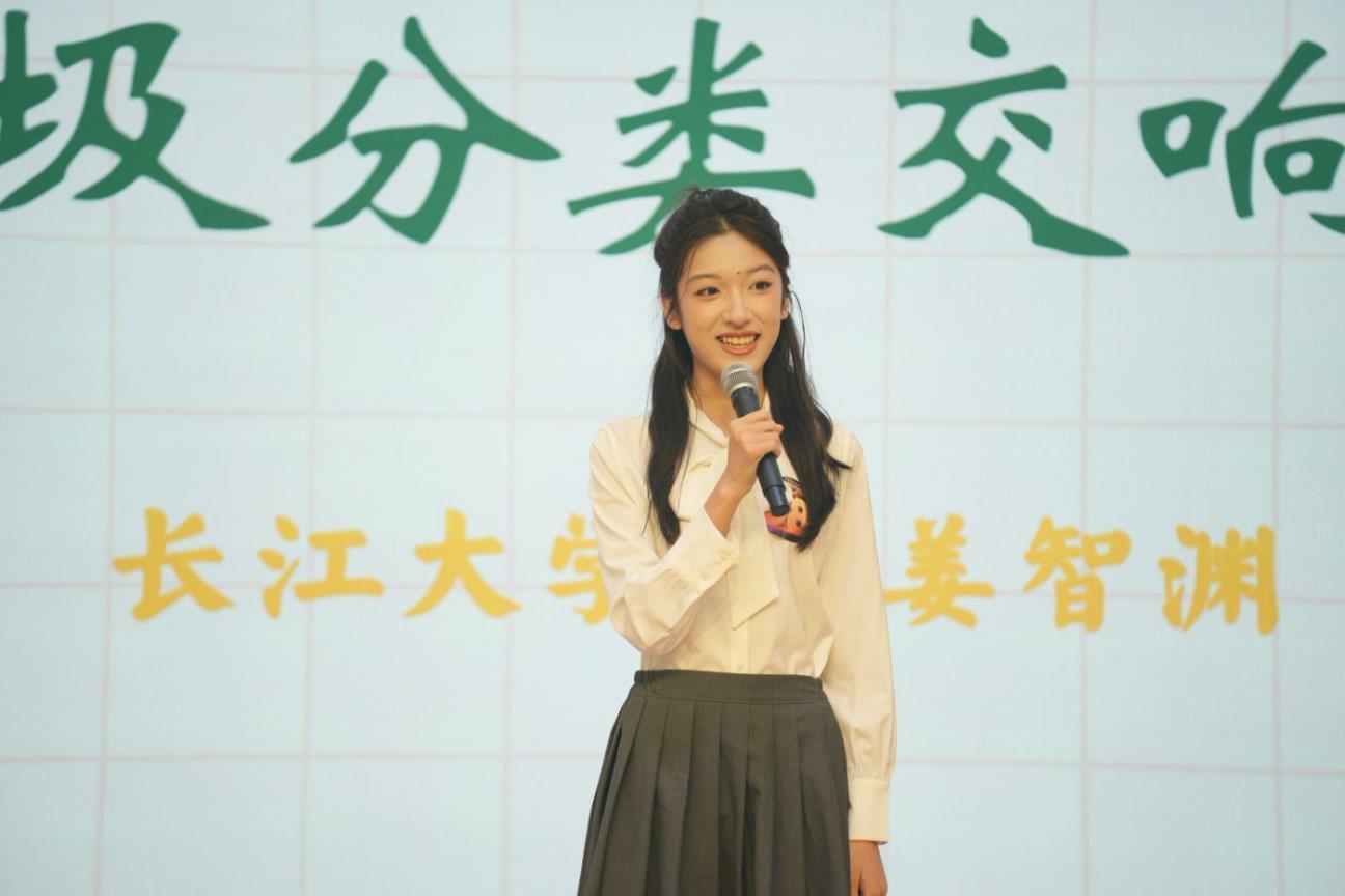 随后的比赛中,来自长江大学传媒学院的姜智渊、马曦曦、杨怡霖、陈梦琪等四名女大学生,以标准的普通话和亲和力,分别从00后的新视角,讲解垃圾分类的重要性,为赛事注入了青春与活力。