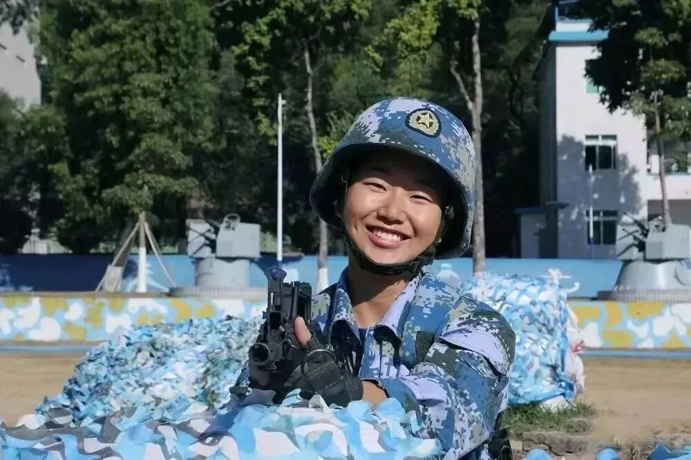 瓷砖映衬着她俯身压平“豆腐块”的身影