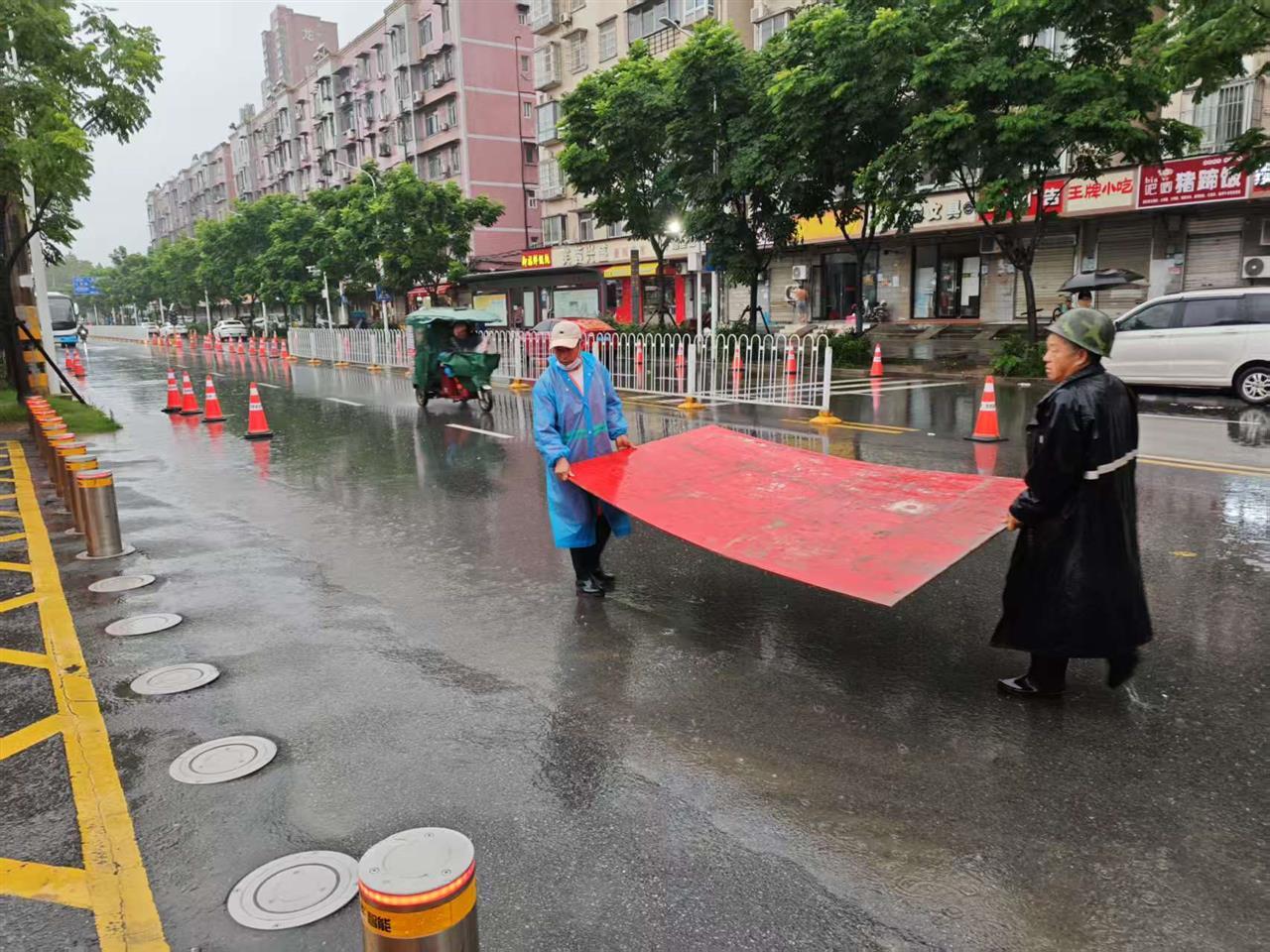 保障考点通畅是重中之重,但长青环卫公司的守护并未止步于此,他们的身影穿梭在大街小巷,还时刻关注辖区其他各易积水路段,及时清理积水、快速清运被雨水冲刷出的垃圾。在积水隐患点设置醒目标识,提醒车辆和行人注意安全;同时加大巡查频次,第一时间清理被雨水冲落的树枝,严防下水道堵塞,全力保障中考期间辖区道路整体安全畅通。