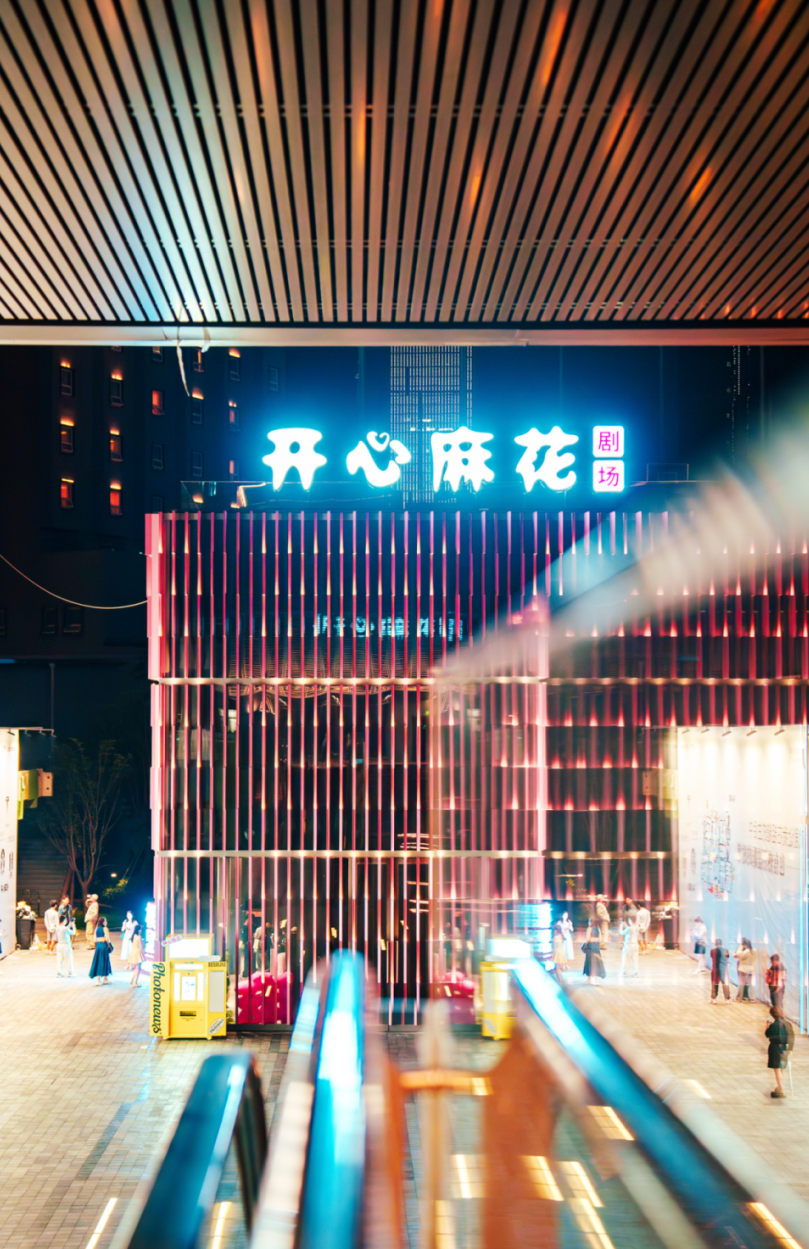 充满N种可能的“盲盒剧场” 观众既可通过买票,入内欣赏一段震撼Livehouse、爆笑脱口秀。 也可以在逛街途中,偶遇一场有趣的街边联名艺术展、最新的室外T台时装秀。