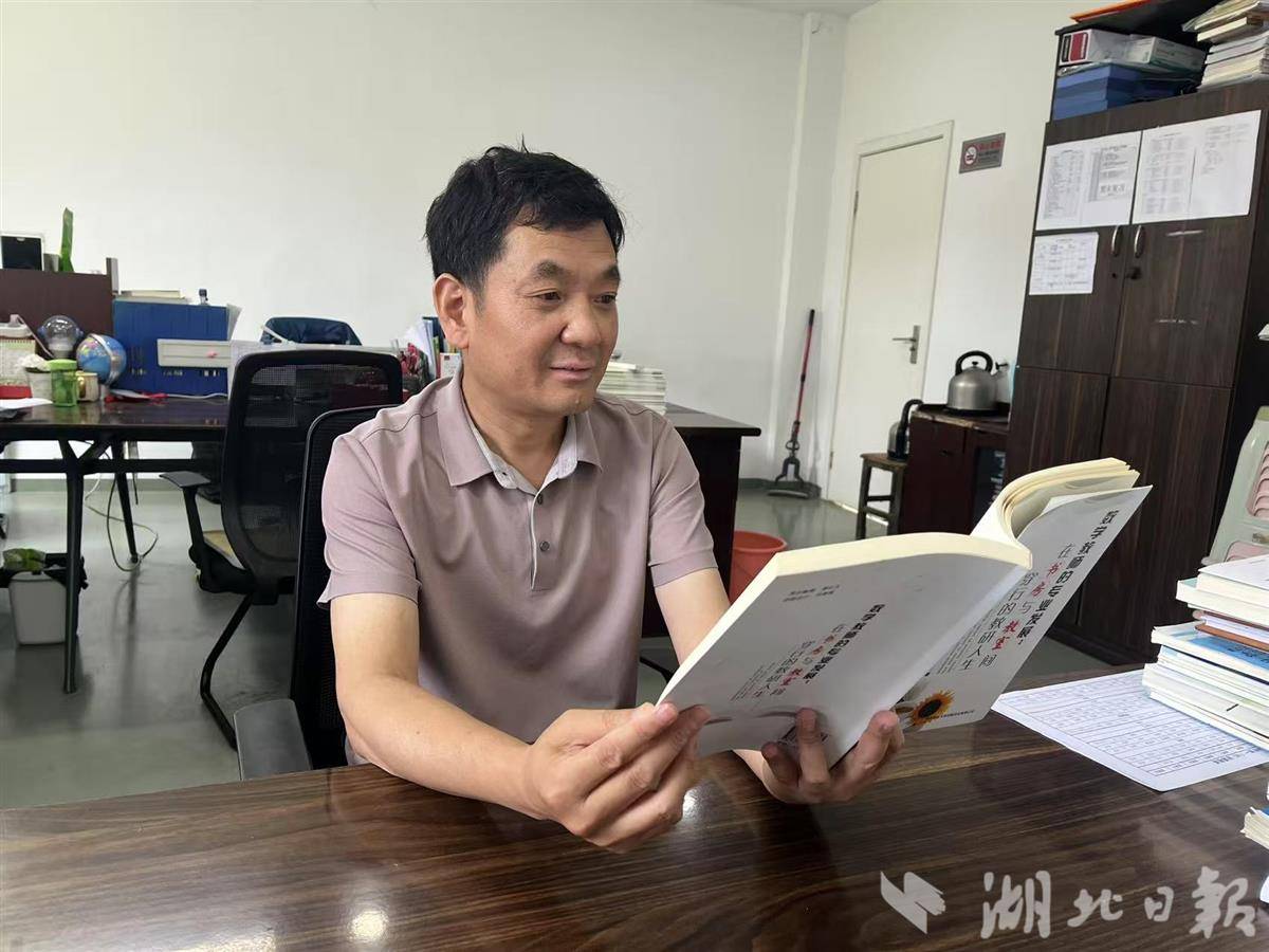 张胜言在办公室阅读教研书籍。