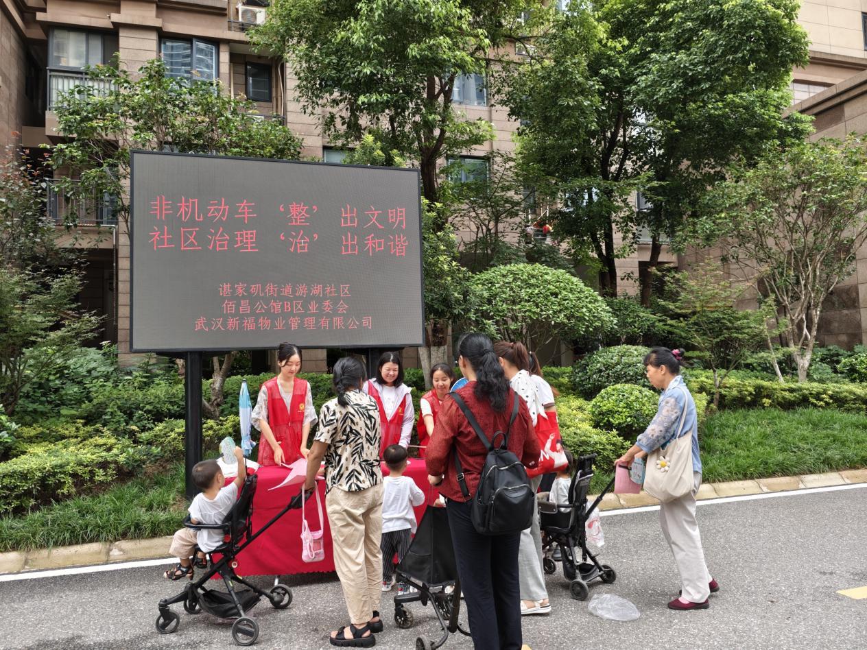 为积极响应全国第24个安全生产月“人人讲安全、个个会应急——查找身边安全隐患”的主题号召,进一步提升社区居民的安全意识,武汉游湖社区联合佰昌公馆B区业委会、佰昌公馆新福物业管理有限公司于6月24日在佰昌公馆B区北门开展了一场别开生面的非机动车与禁毒联合宣传活动,吸引了众多社区居民的热情参与。