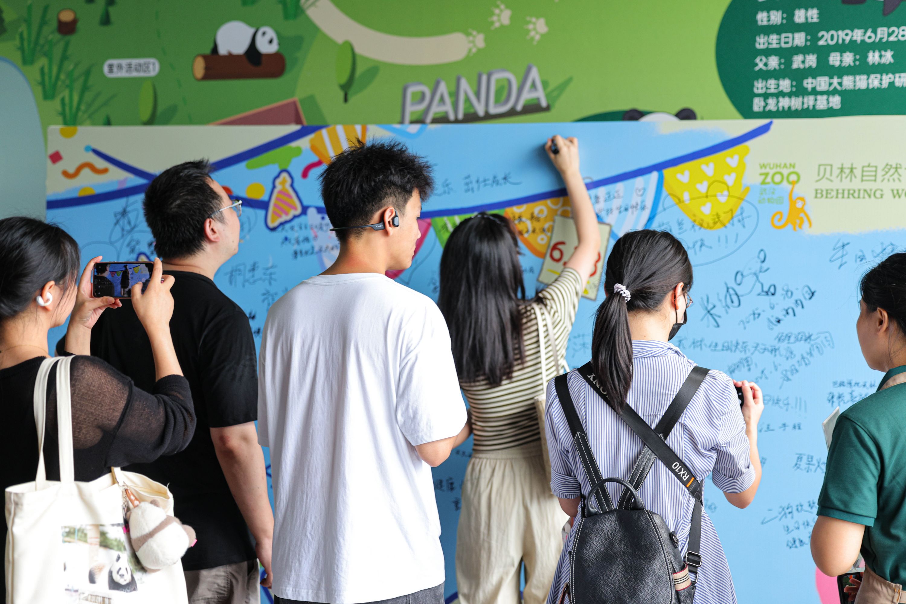 众多来自武汉及周边的市民游客齐聚大熊猫馆,共同为武林庆生。今年11岁的汪心语,一进园就直奔生日现场,看到武林津津有味地吃蛋糕,她激动地送上祝福:“祝武林生日快乐,希望它每天都有好吃的,早日成为‘武林高手’!”