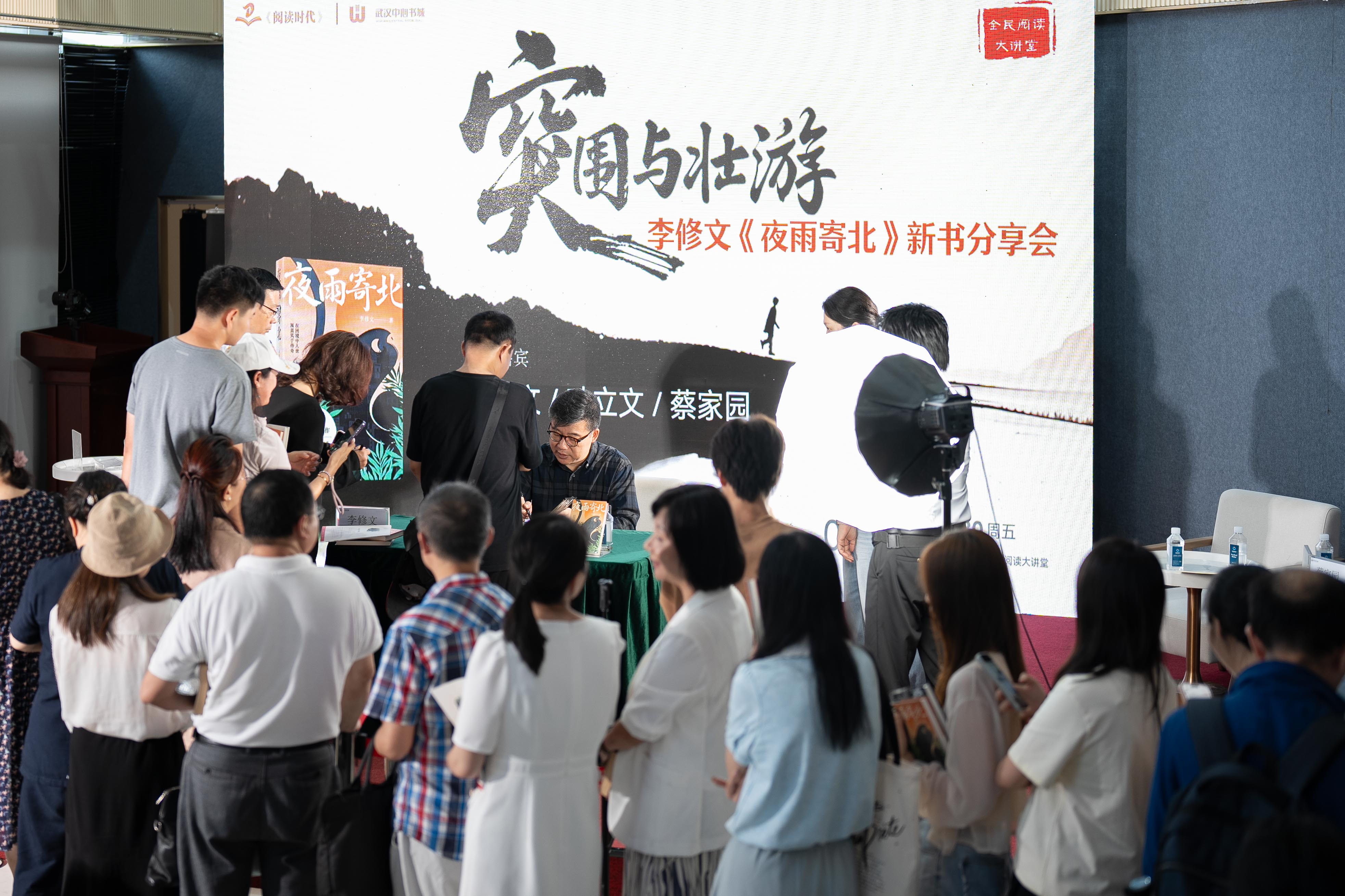 6月27日,武汉中心书城全民阅读大讲堂迎来一场文学盛宴——鲁迅文学奖得主、湖北省作协主席李修文携新作《夜雨寄北》亮相,与茅盾文学奖评委叶立文、蔡家园展开深度对谈。