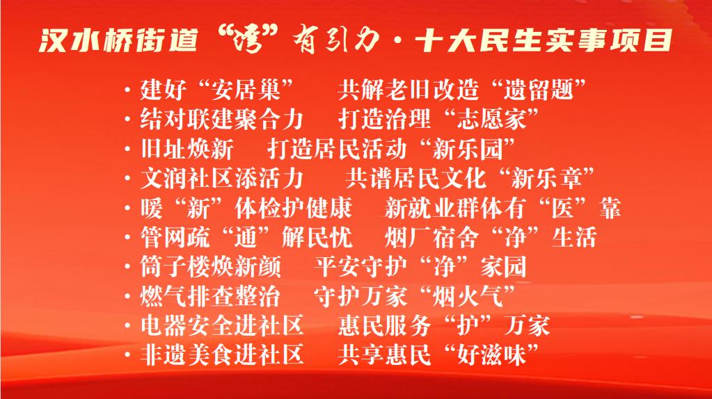 会上,汉水桥街道2025年度重点推进的十大民生实事项目正式揭幕: