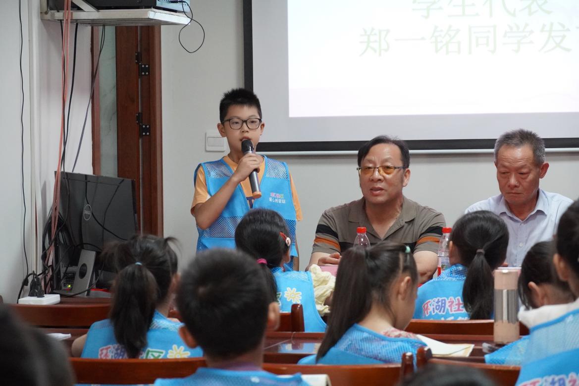 在领导的殷切寄语后,学生代表郑同学走上讲台,脸上洋溢着兴奋与期待:“谢谢社区和老师们!这个暑假,我可以认识新朋友了。我一定会珍惜机会,认真学习,过一个很有意义的暑假!”台下响起一片鼓励的掌声。