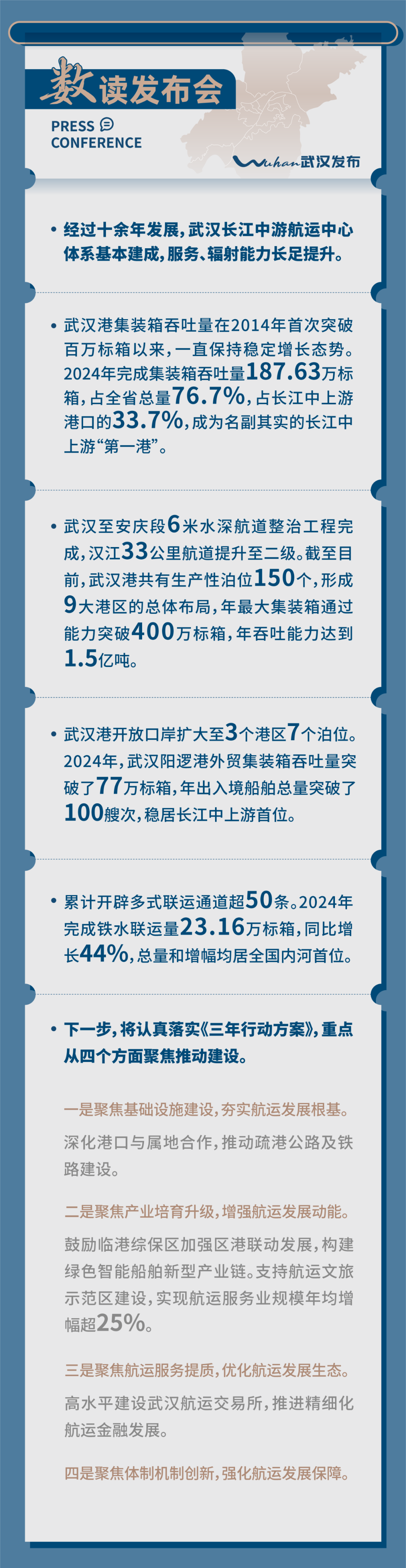二是优化要素配置,提升高端产业引领力。去年底,联合湖北港口集团成立100亿规模的港航发展基金,重点支持港口和航运项目建设。