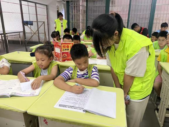 第四节课是作业辅导时间。志愿者老师们分组行动,耐心辅导小朋友完成暑期作业:解答数学难题、讲解生字词用法……老师们细致的指导不仅帮助孩子们解决了学习中的困惑,也在潜移默化中培养着他们良好的学习习惯。