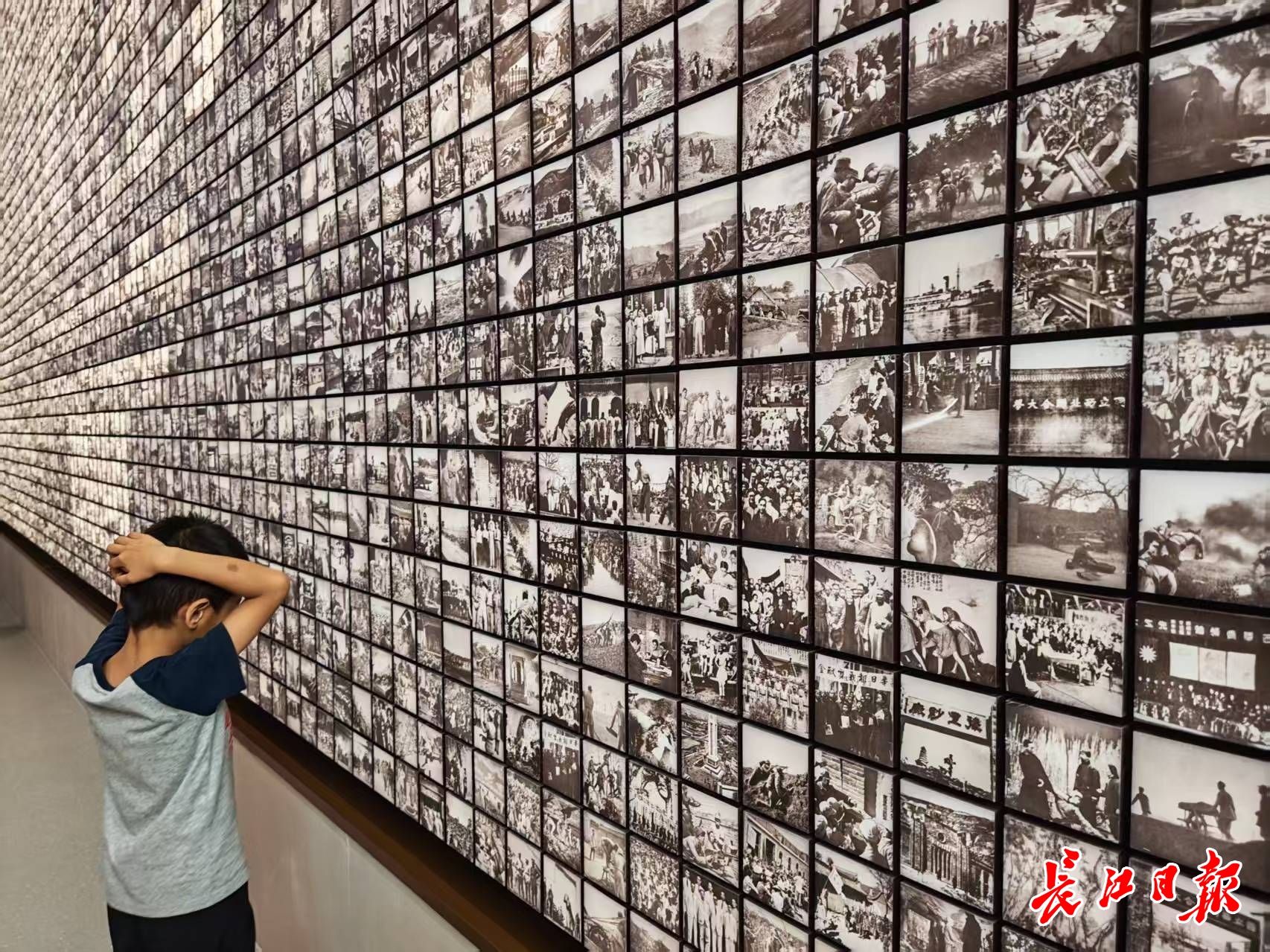 展厅中,一个由5098张抗战老照片组成的照片墙阵令人震撼不已。这是四亿五千万中国人民从1931年9月18日至1945年9月2日共计5098天、14年浴血抗战历程的见证。