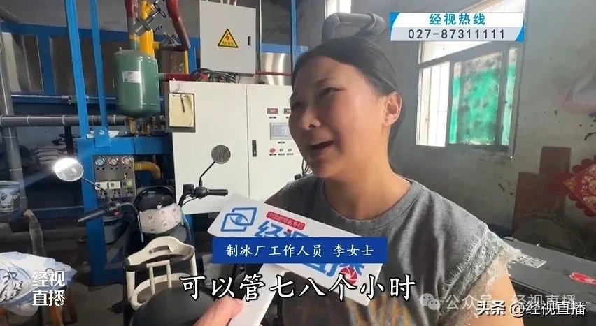 记者探访时发现,该制冰厂的冷库内温度极低,里面整齐摆放着不同规格的冰块。为防止寒气侵入身体,冰库里的工人们都穿着棉服、棉裤工作。由于需求量大,工人们上班时间十分忙碌,几乎没有停歇。“这一个冰块就 100 斤,很累。” 一位工作人员说道。另一位工作人员则表示:“这里面的温度零下 15 度,凉爽的很。”