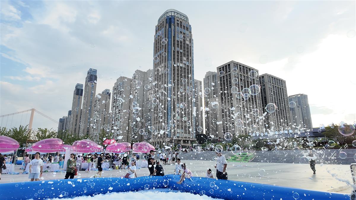 7月12日晚,2025汉阳区夏季“荷汉阳,一起浪”文旅消费季主会场活动在杨泗港都市T台举行,夏日晚风中,千余市民听滨江音乐、看露天电影、逛趣味集市、游清凉泳池,众多精彩活动点燃夏季热情,拉开“荷汉阳,一起浪”系列活动的序章。