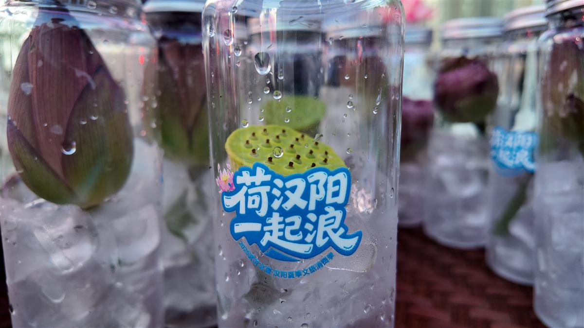印有“荷汉阳,一起浪”的荷花瓶,免费发放。