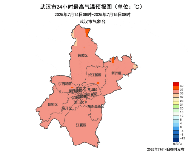 中心城区:最高气温38℃—39℃,最低气温30℃