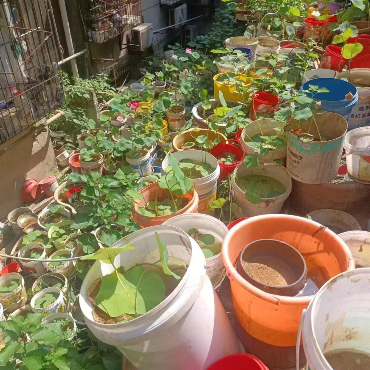 家住江夏纸坊的谢先生自2010年起在自家后院种植盆栽荷花,如今数百盆荷花挤满了院落,每到夏季荷花盛开,形态各异的荷花争奇斗艳,煞是好看。