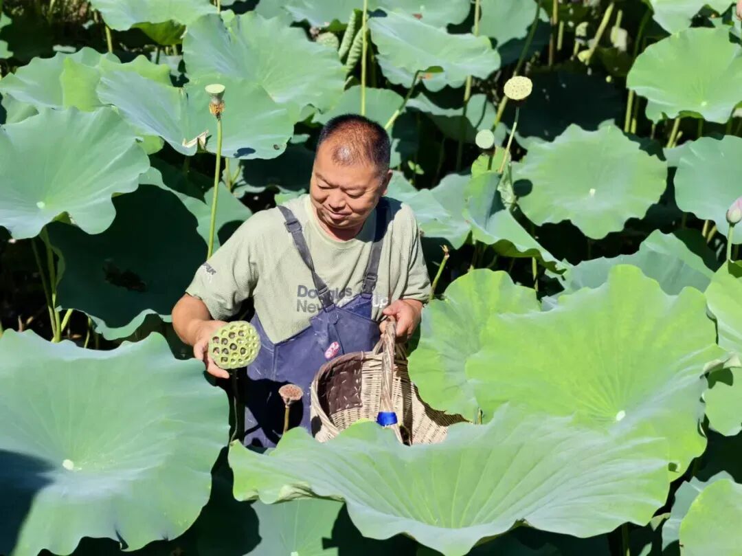 “以前没想过靠荷花吃饭,现在游客来了,赏着花、吃着荷花宴,我们的日子也跟着红火。我们研发了荷叶鸡、荷花豆腐等特色菜品。”绳志强指着不远处的水稻田说,“那里还有村民养的螃蟹,都是我们农家乐特色菜品的原材料”。