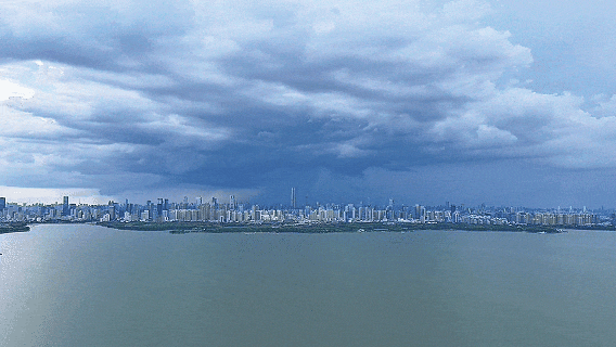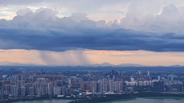 雨在城市上空“溜达”着下