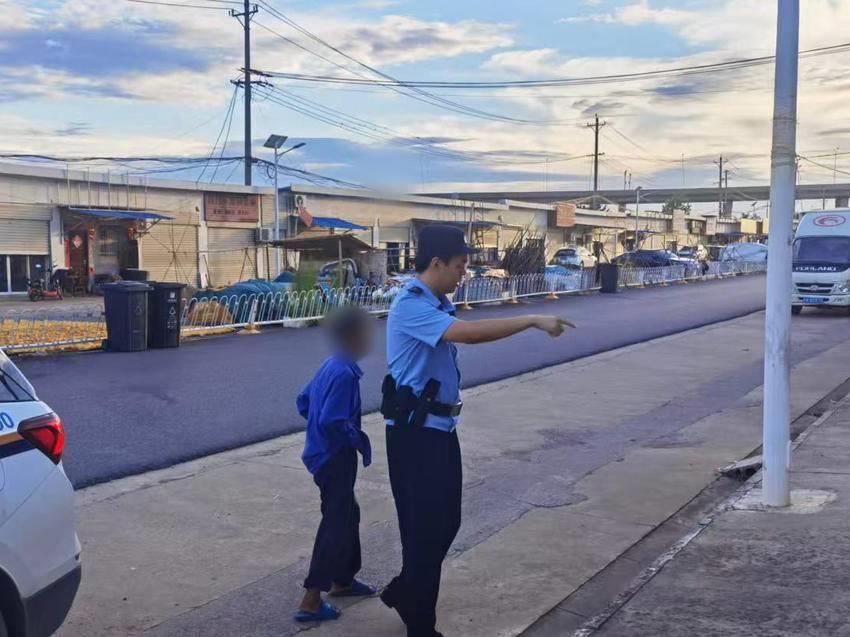 暑热中的守护,步履不停。傍晚6时37分,郑店街派出所也接到群众报警,称在关山桥附近发现一名迷路老人。民警张逸峰接警后迅速赶到现场,在一家水果店旁找到了神情紧张、沟通困难的老爹爹。